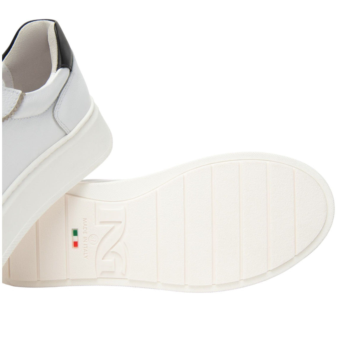 La Sneakers firmata Nero Giardini, realizzata in pelle con fodera interna in pelle e tessuto, assicura comfort e traspirabilità. Il bianco luminoso è arricchito da dettagli metallici e inserti a contrasto sul tallone e nei lacci neri, per un look contemporaneo e grintoso. La chiusura stringata garantisce una calzata sicura, mentre il fondo platform in gomma da 4cm dona altezza extra senza rinunciare alla stabilità. La soletta estraibile rende il modello pratico e igienico.
