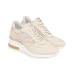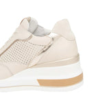 La Sneakers firmata Nero Giardini, con zeppa da 6,5cm combina pelle italiana e una costruzione stabile che garantisce sostegno durante la camminata. La fodera e la soletta in pelle offrono morbidezza e traspirabilità, mentre la struttura sneakers si adatta con naturalezza ai movimenti quotidiani. Il beige restituisce un look delicato e facilmente abbinabile, ideale per outfit casual donna. Una scarpa che unisce qualità artigianale, comfort e un'estetica moderna valorizzata dalla zeppa alta.