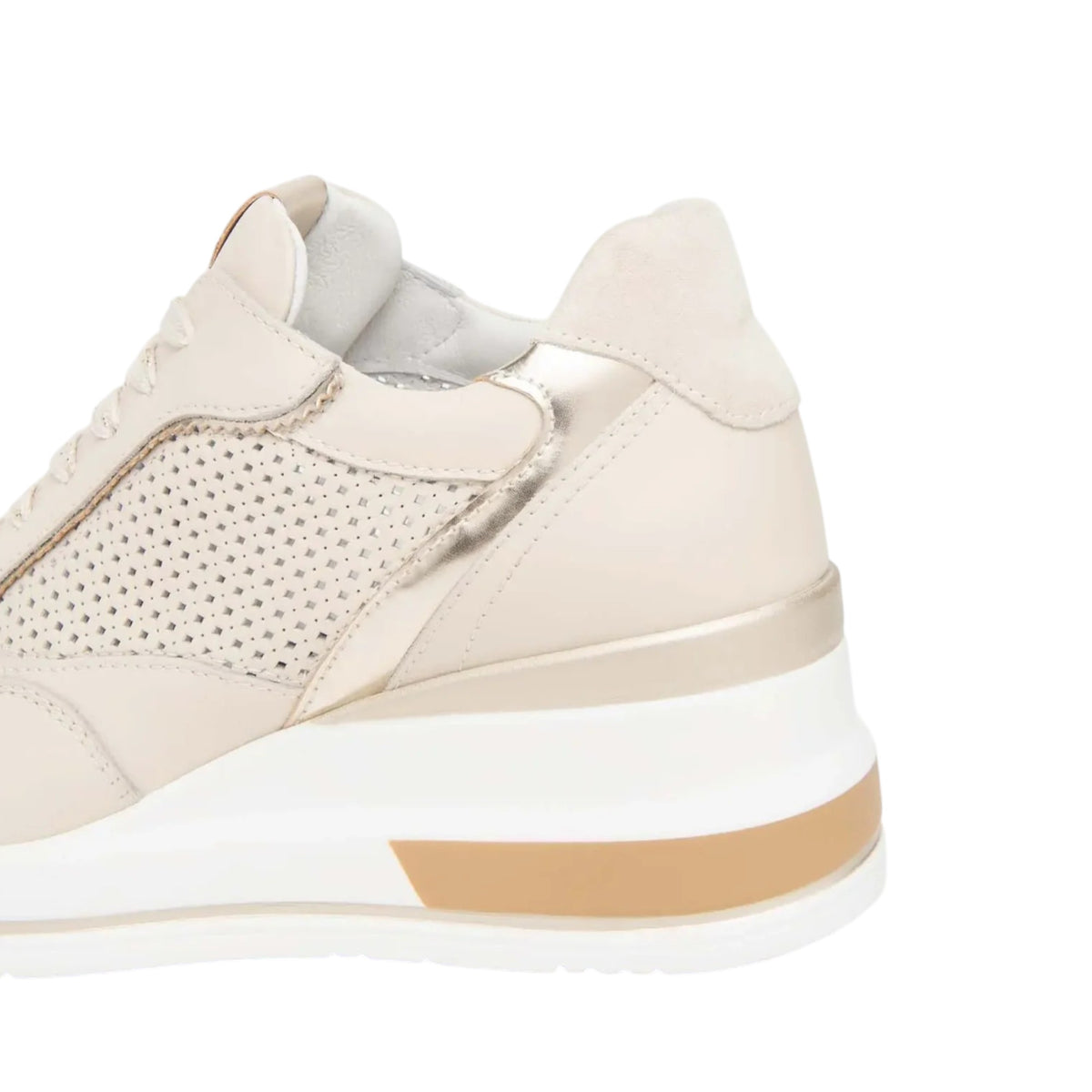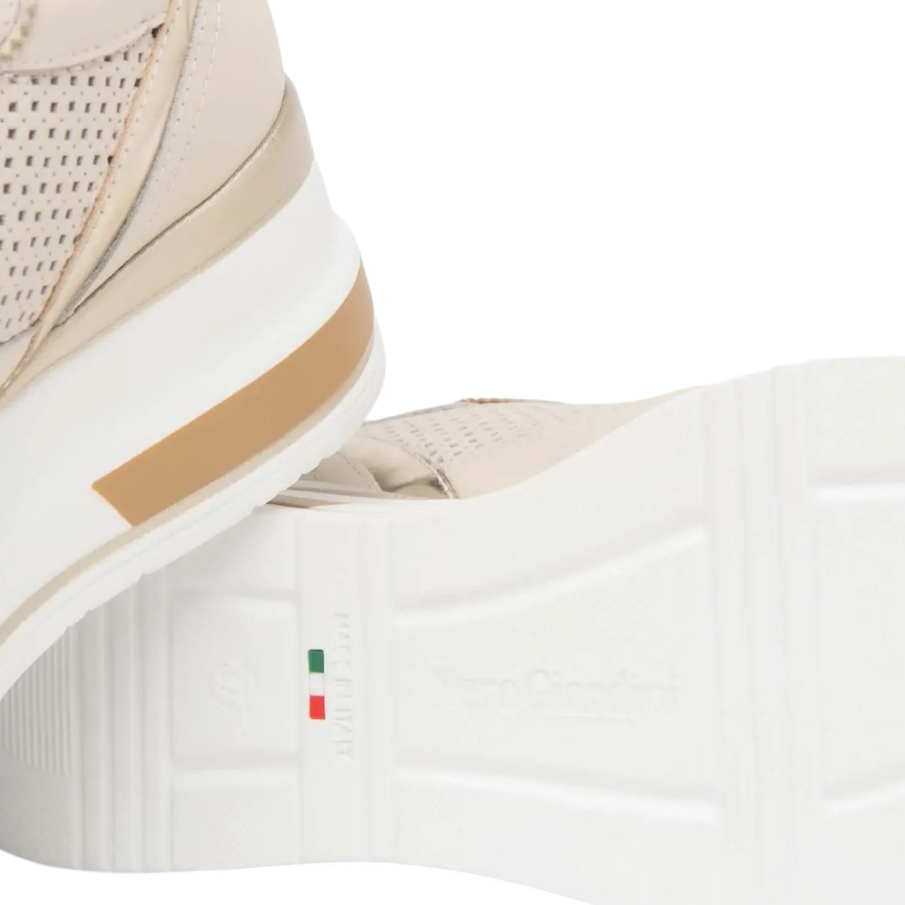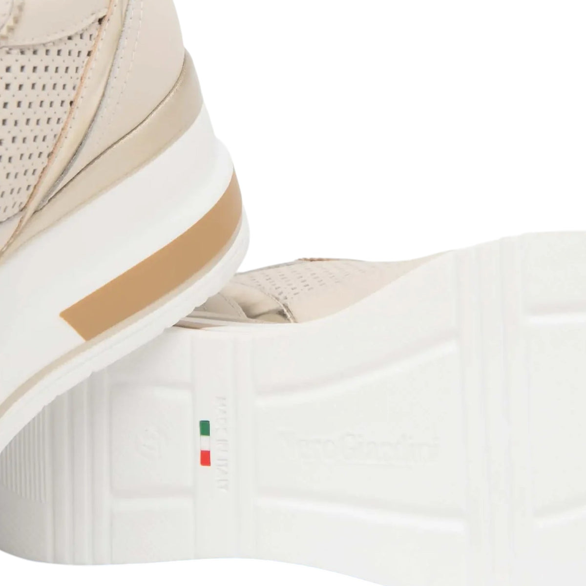Nero Giardini Sneakers Donna in Pelle latte Platino con Zeppa