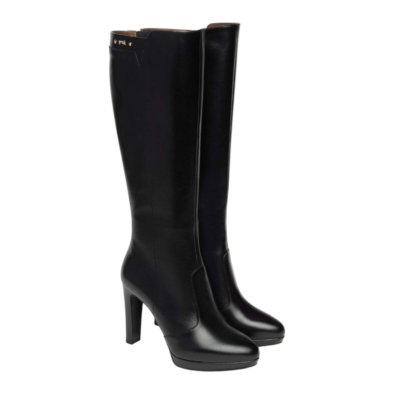 Nero Giardini Stivale Donna in Pelle Nera con Plateau e Tacco Alto 100mm