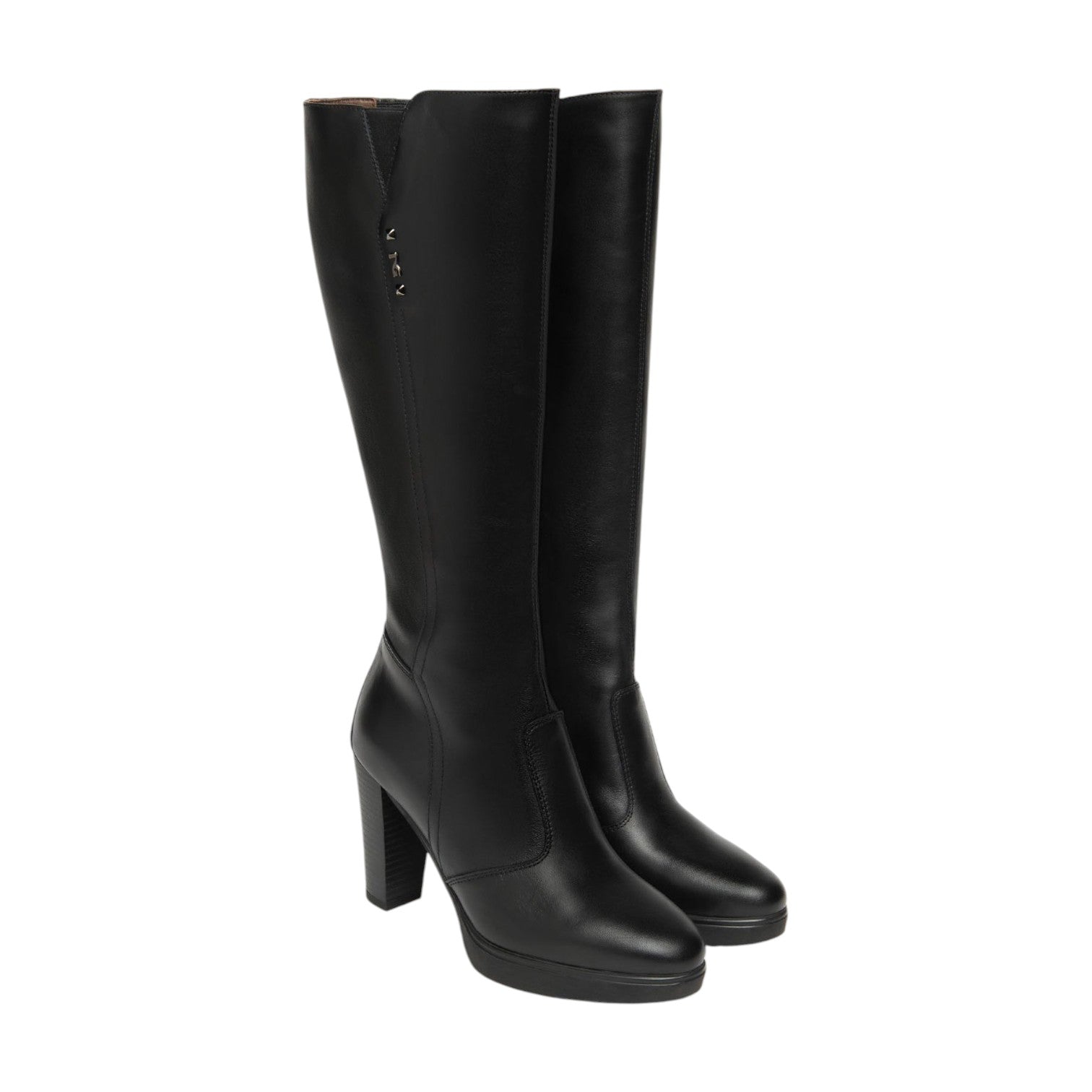 Nero Giardini Stivale Donna in Pelle Nera con Tacco Alto 100mm e Logo Laterale