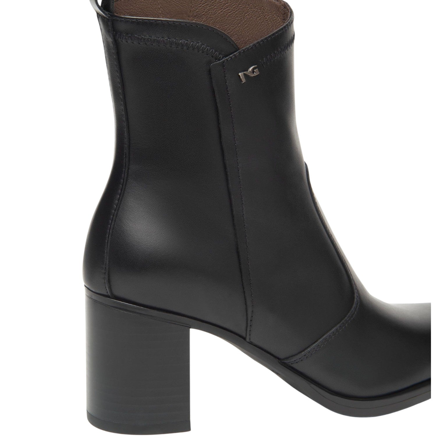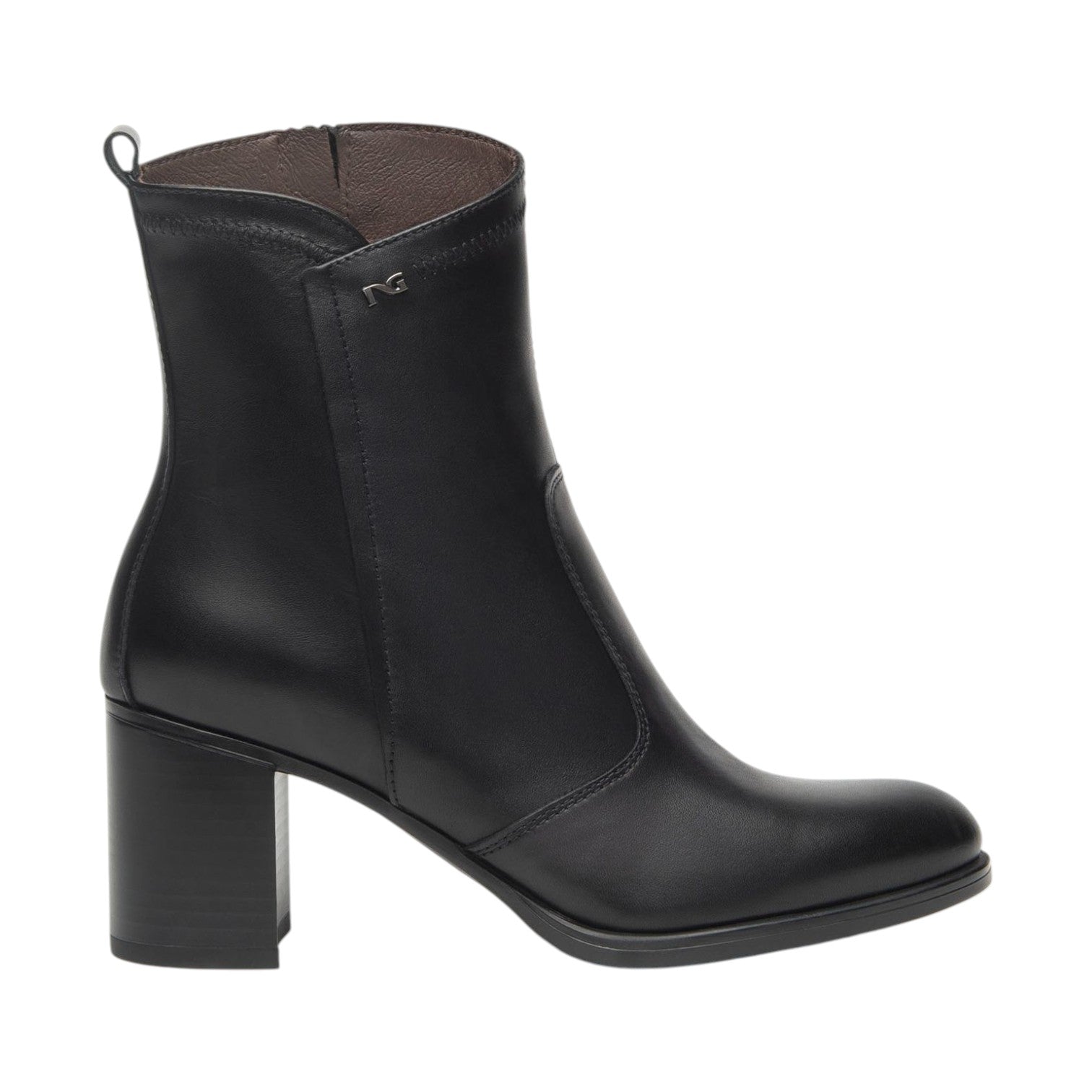Nero Giardini Tronchetto Donna in Pelle Nera con Profilo Asimmetrico e Tacco Largo Alto 70mm