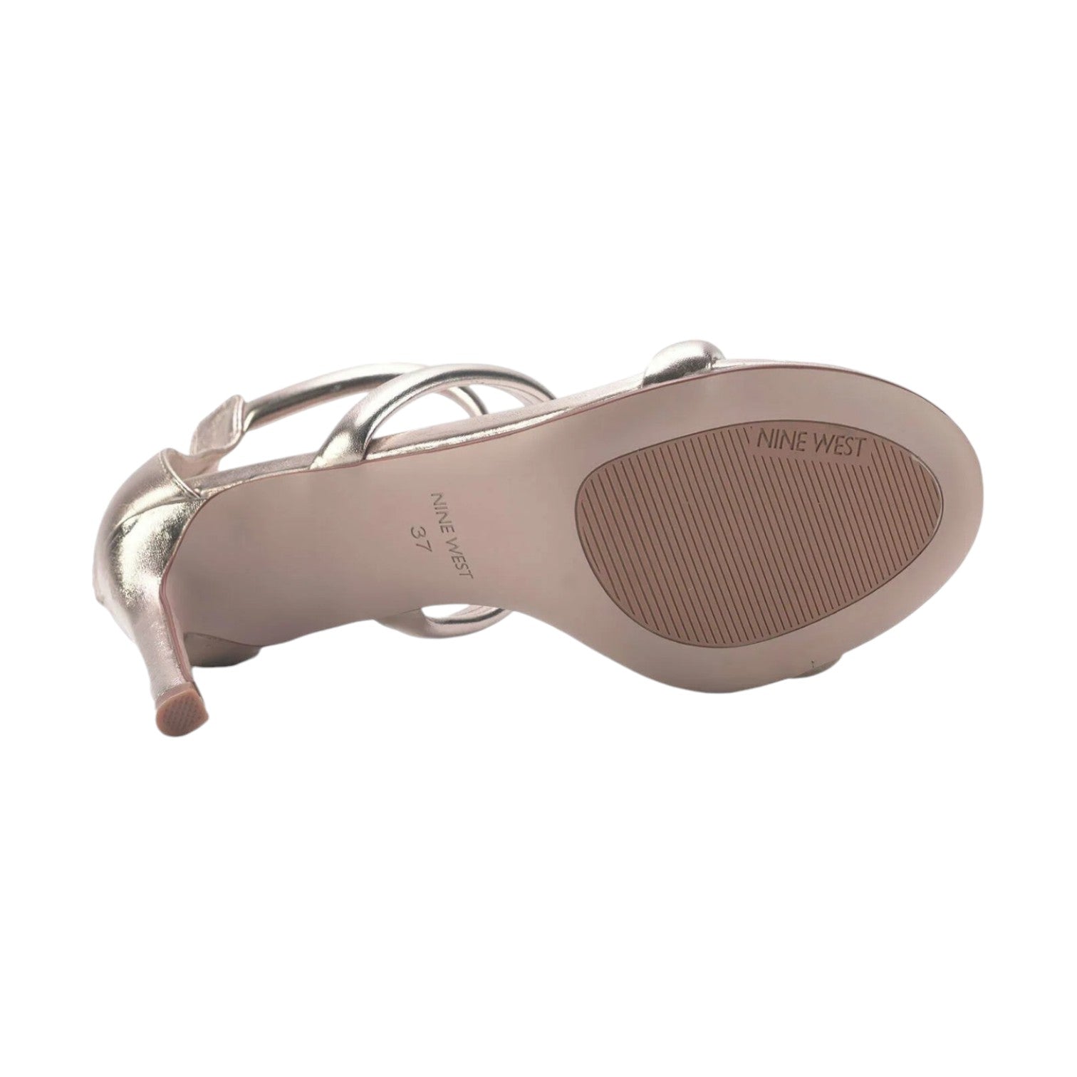 Il Sandalo firmato Nine West, realizzato in similpelle dorata laminata, chiuso dietro con zip. Dispone di un morbido plantare in similpelle per una comoda calzata.