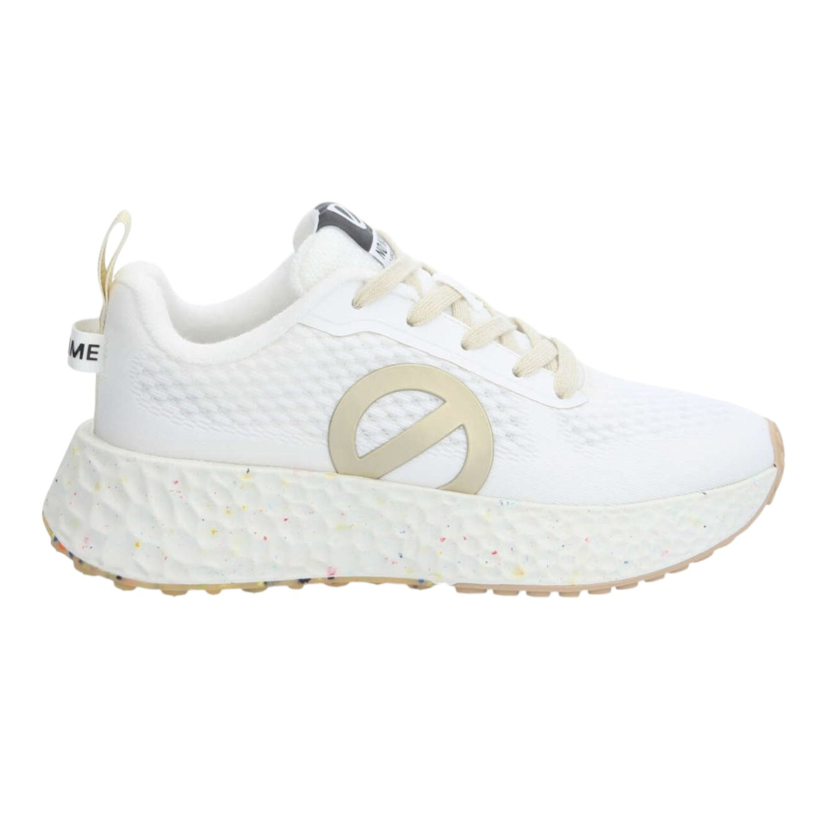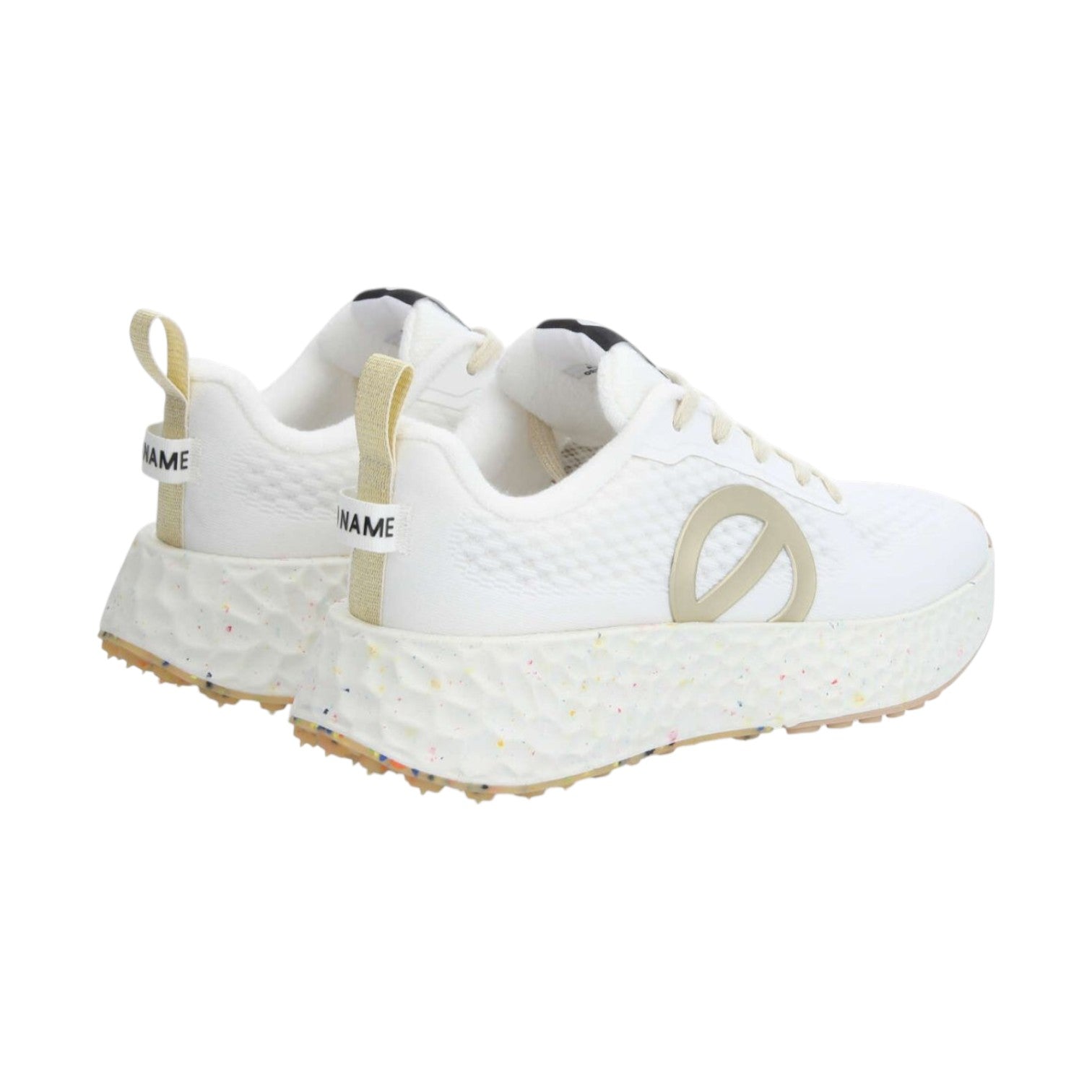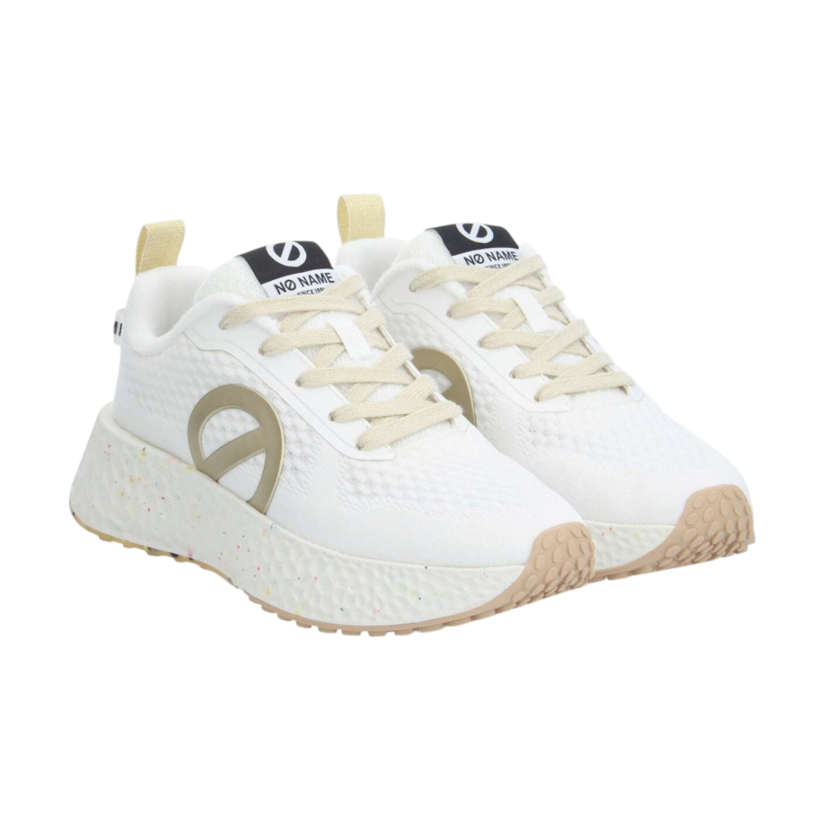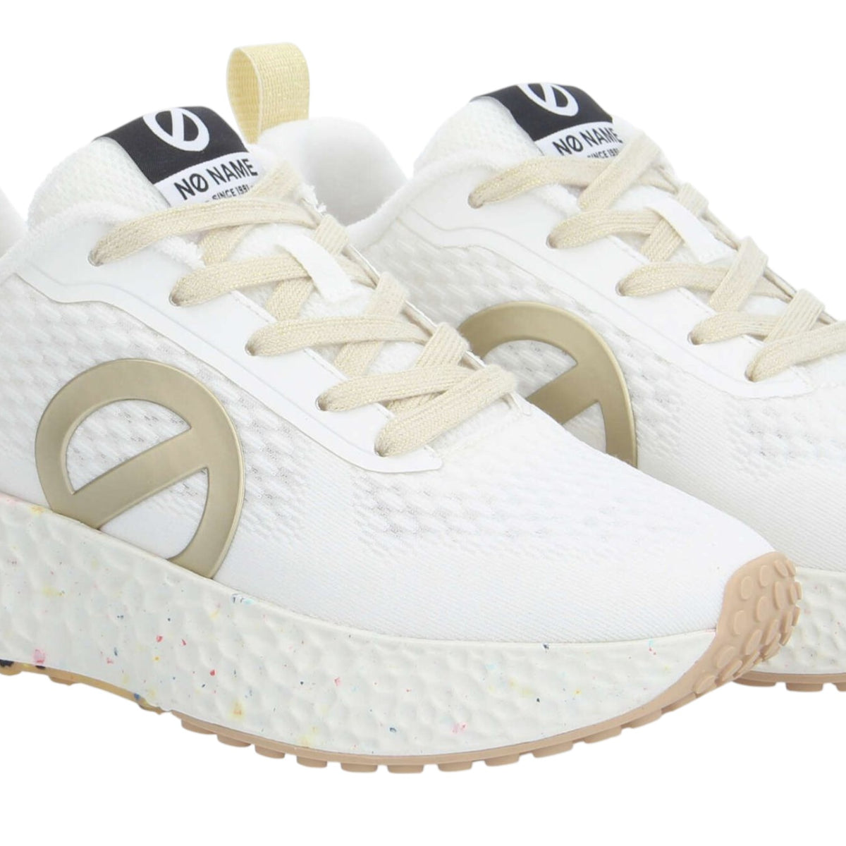 La Sneakers firmata Nø Name, inietterà un'atmosfera outdoor ai tuoi look da giungla urbana. Ora disponibile in un rinfrescante bianco dorato e rifinita con un logo XXL, questa sneakers in rete riciclata farà sicuramente girare la testa. Ha una suola audace, così puoi battere i marciapiedi cittadini con uno stile innegabile.