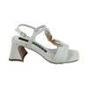 Il Sandalo firmato Luciano Barachini, realizzato in pelle presenta una fascia larga sul davanti con accessorio dorato con punta squadrata, dotato di comodo tacco largo squadrato alto 7cm e di sottopiede in pelle imbottito dal tallone fin tutto l’arco plantare.
