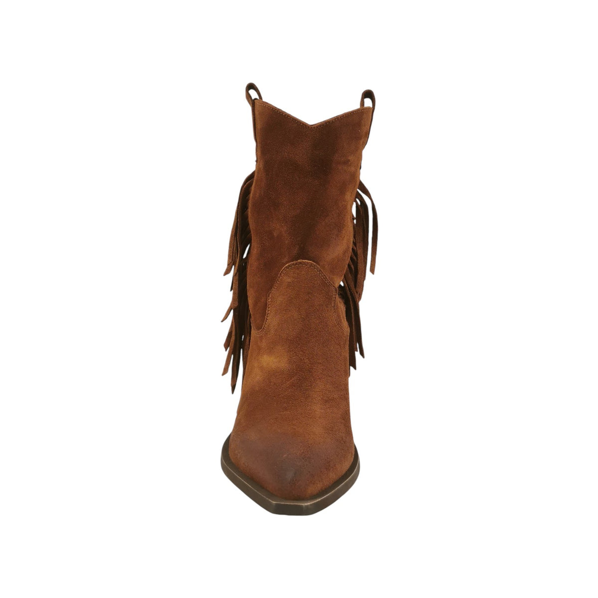 Agua Camperos Donna in Camoscio Cuoio con Frange e Tacco Largo Alto 50mm