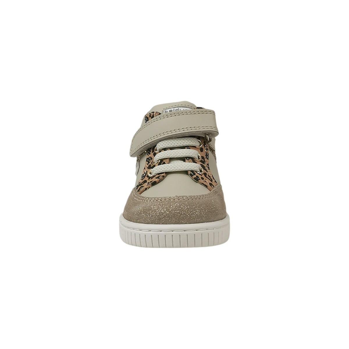 Balducci Sneakers Bambina in Pelle Beige con Stampa Leopardata e Strappo