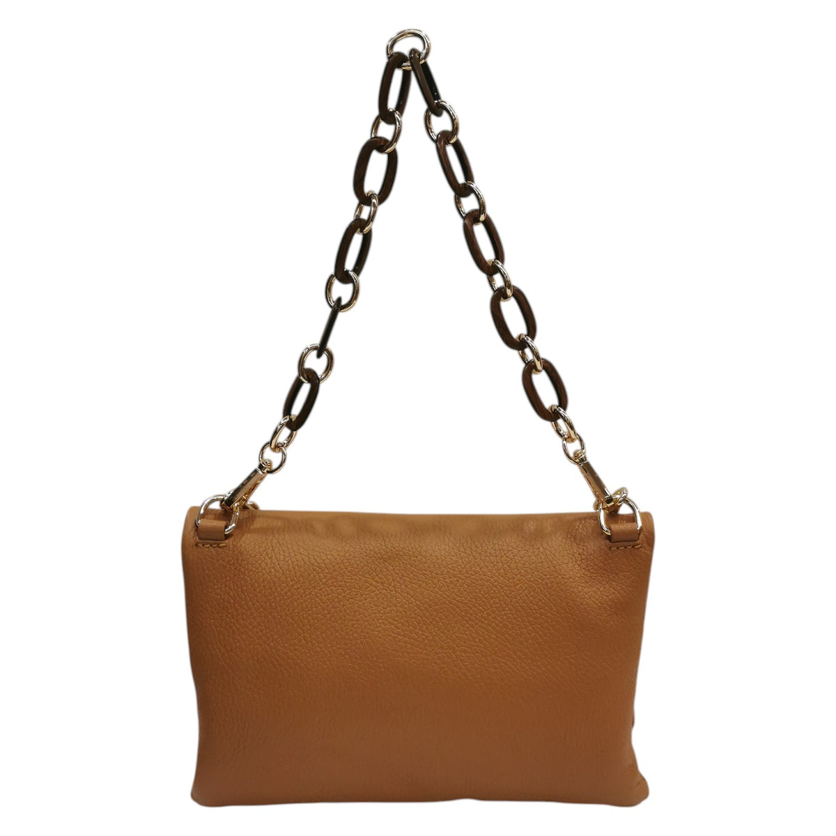 Caleidos Borsa a Spalla Donna in Pelle Caramello con Doppia Catena e Tracolla con Bottoncino