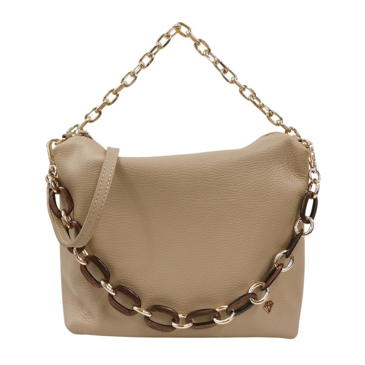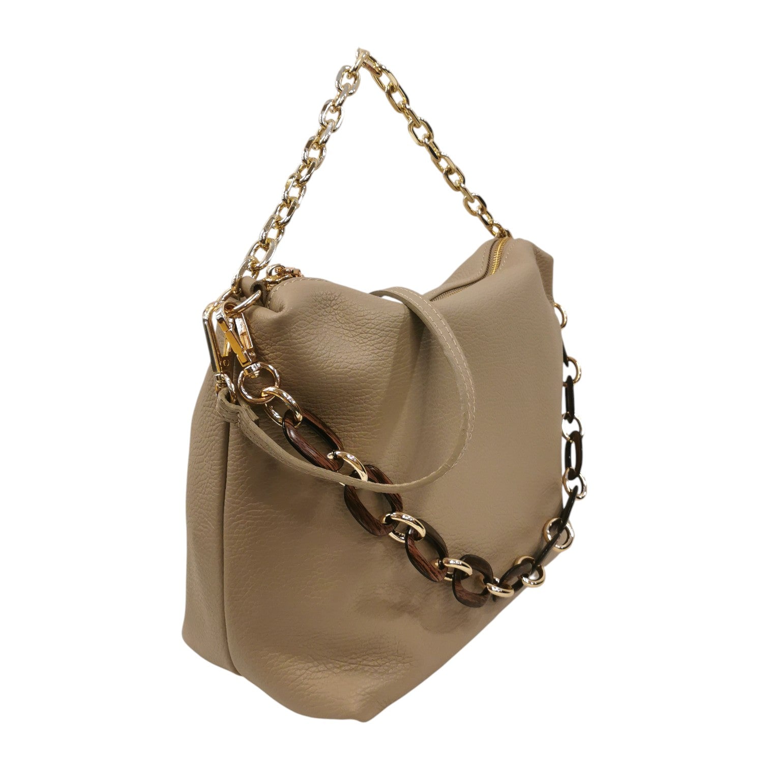 Caleidos Borsa a Spalla Donna in Pelle Morbida Martellata Marmo con Catena