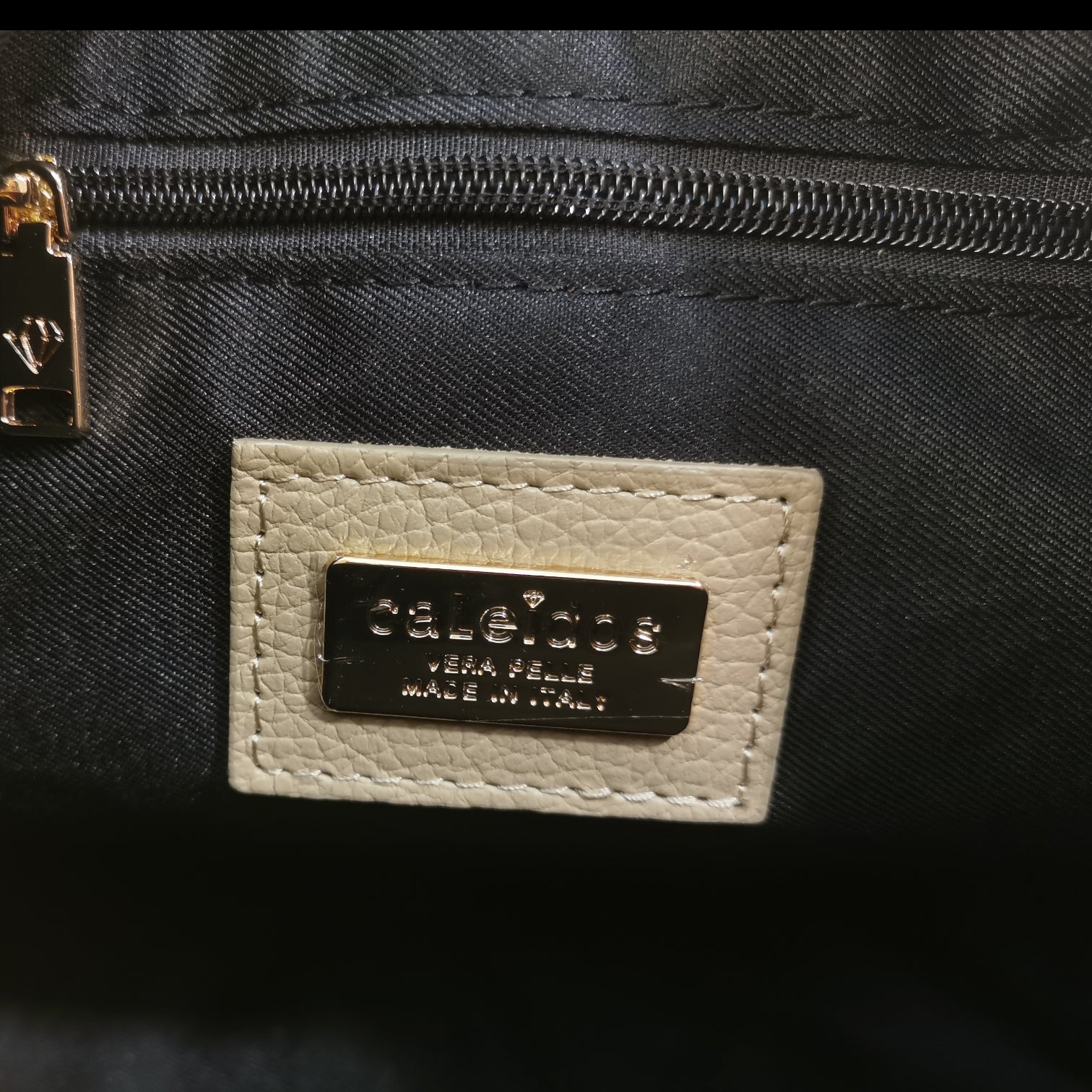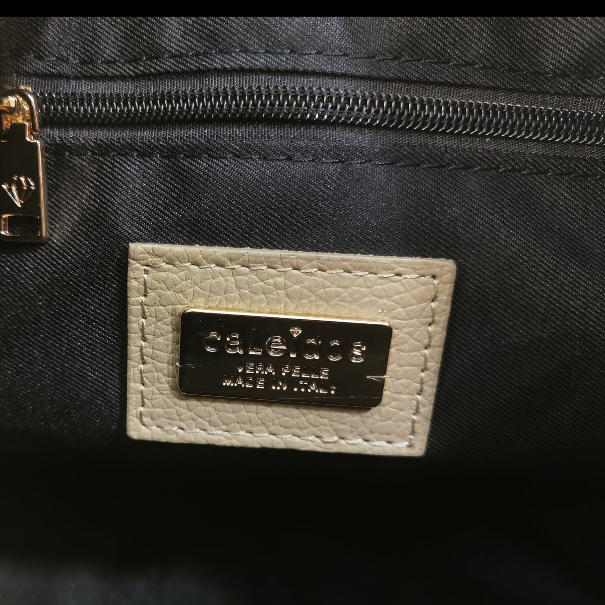 La Borsa a spalla firmata Caleidos, realizzata in pelle martellata qui proposta nella variante marmo è caratterizzata da doppia catena removibile sia da usare come decorazione che come manico con tracolla in pelle. L'interno è foderato in tessuto di cui dispone di tasca con zip.