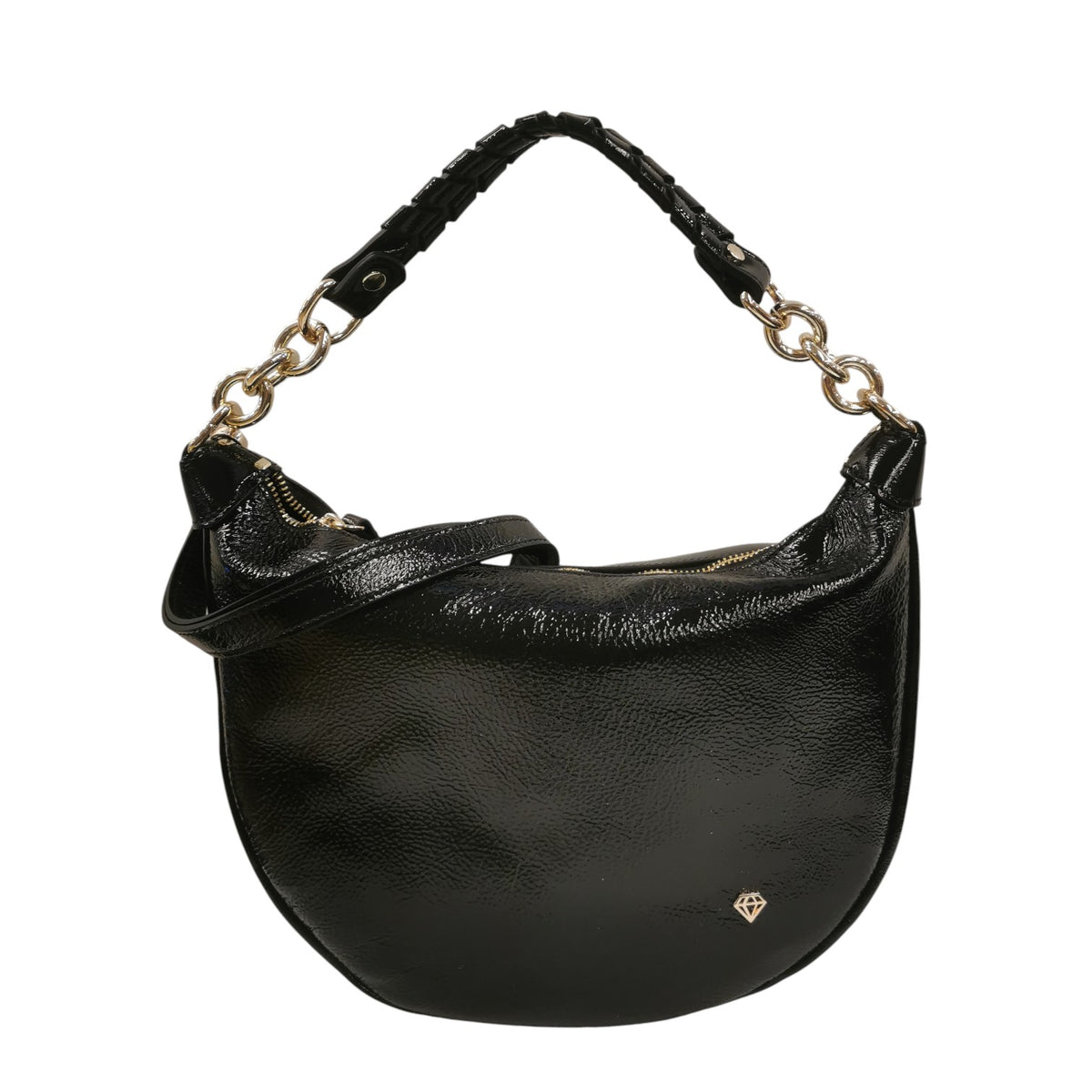 Caleidos Borsa a Spalla Mezzaluna Media Donna in Vernice Nera con Tracolla