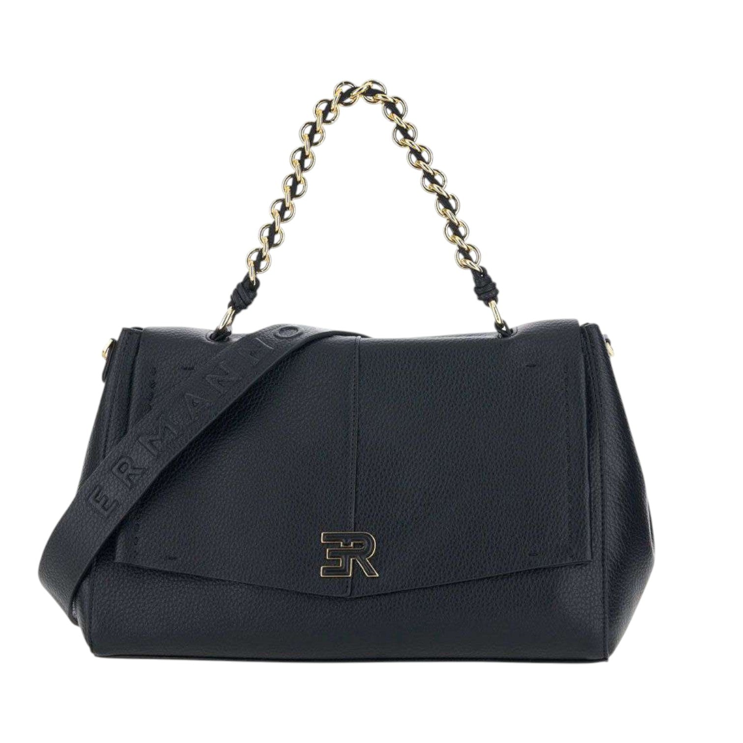 Ermanno Scervino Borsa a Spalla Donna in Ecopelle Nera con Manico a Catena e Patta