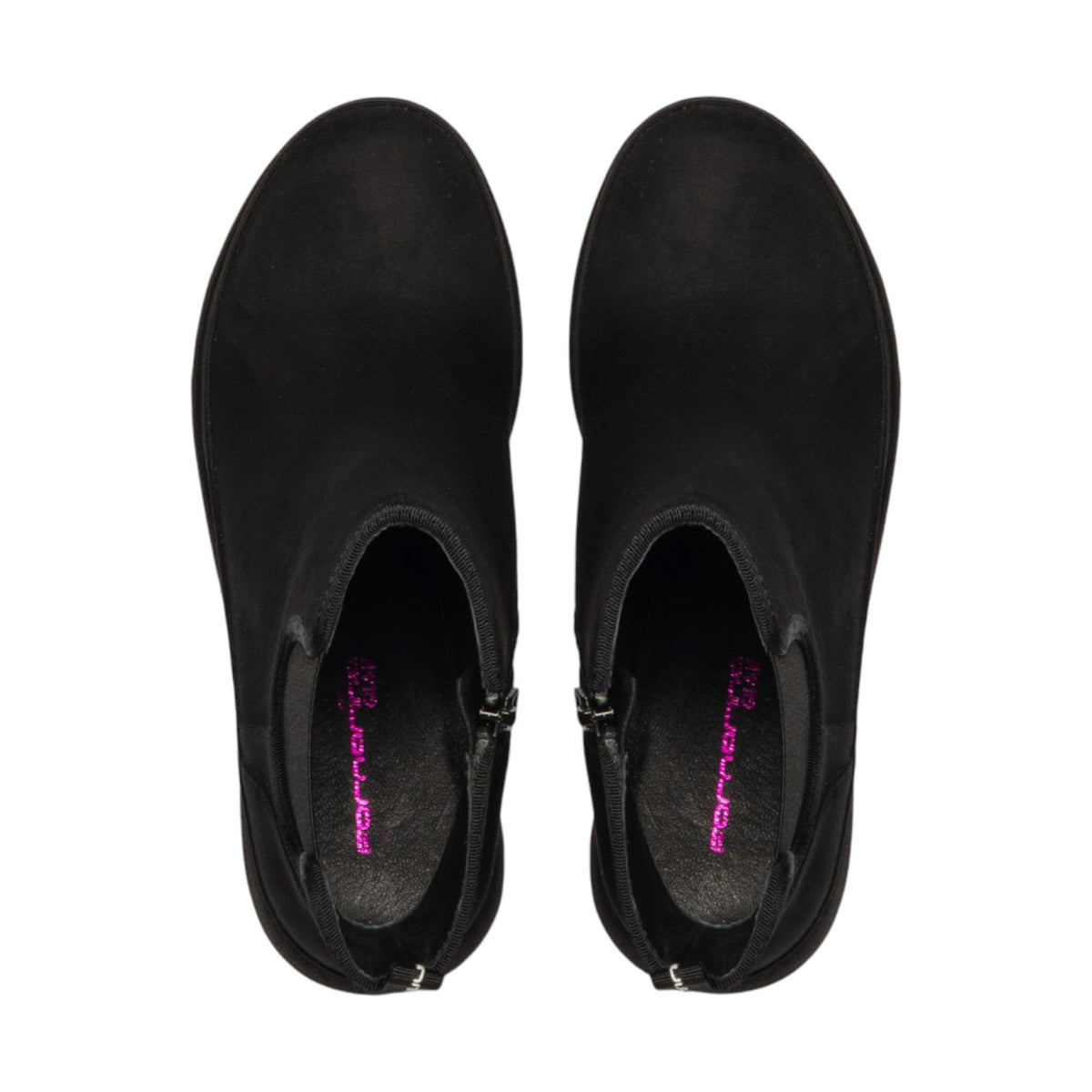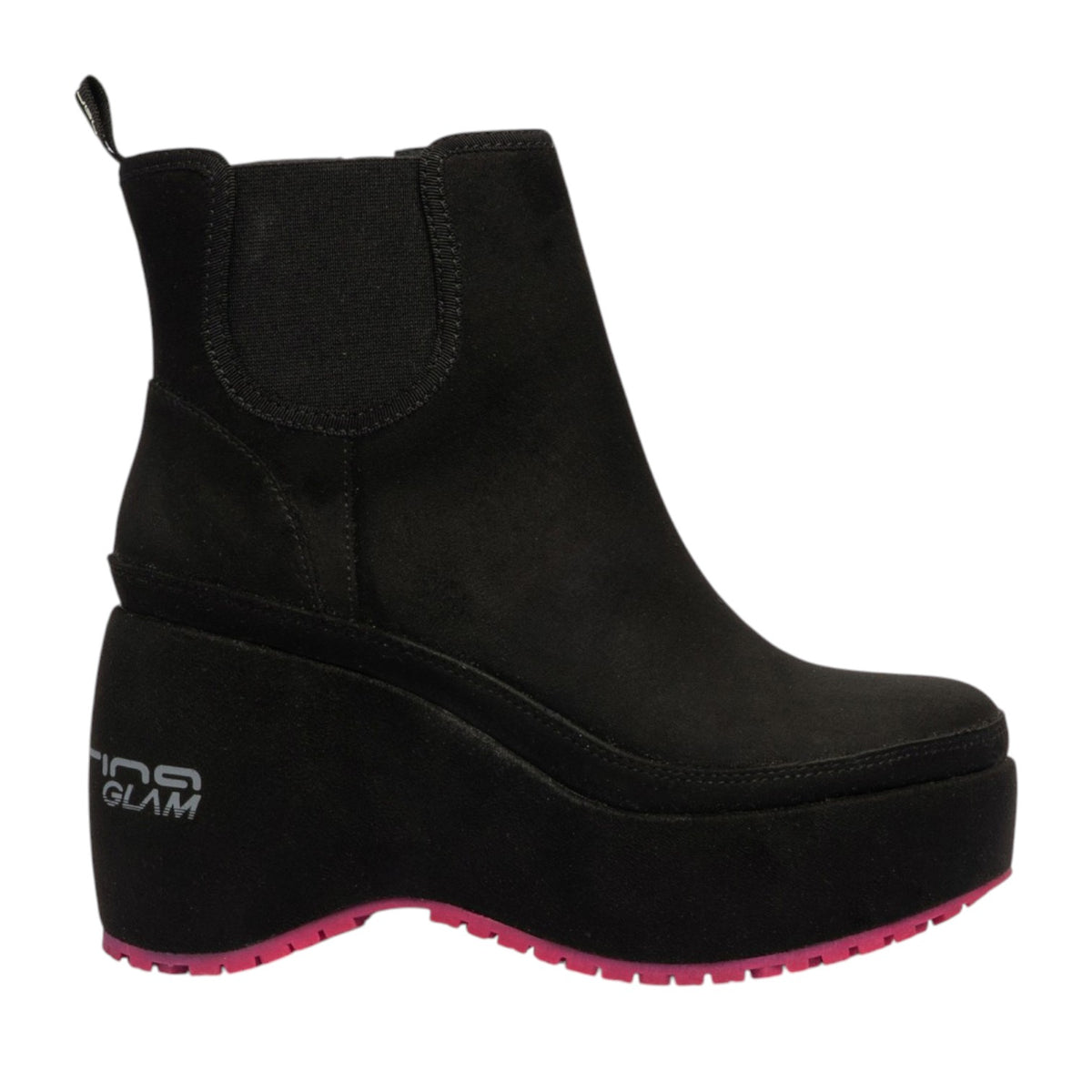 Lo Stivaletto firmato Fornarina, realizzato in camoscio sintetico nero è caratterizzato da elastico laterale e da zeppa alta 10cm. Aggiungi slancio e un tocco di carattere al tuo look di fornarina. Zip ed elastico laterali per facilitare la calzata.