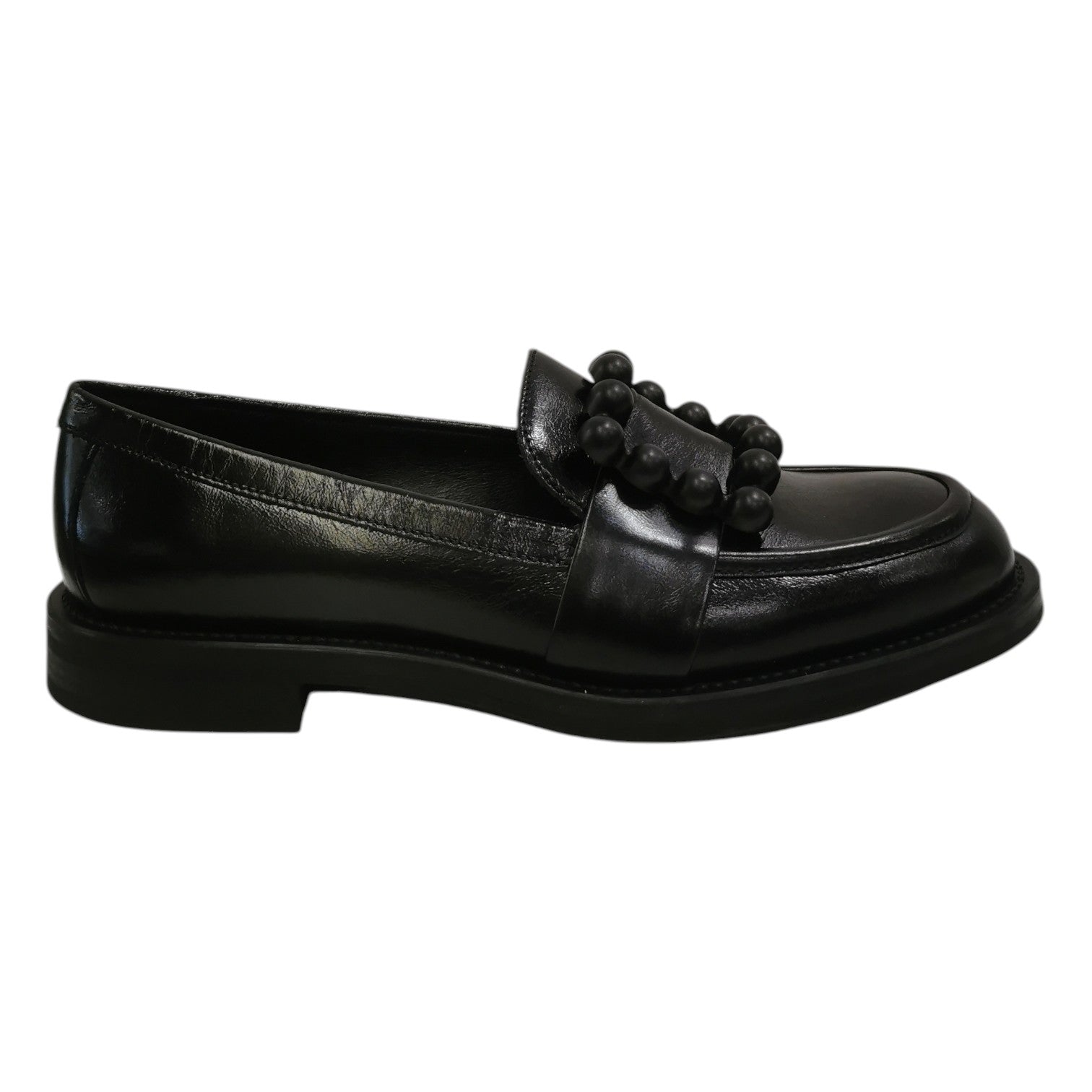 Frau Mocassino Donna in Pelle Nera con Accessorio
