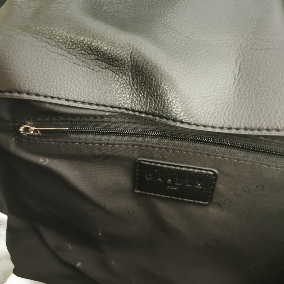 La Borsa a tracolla firmata Gaelle, realizzata in ecopelle nera è caratterizzata da scritta logo frontale e da tracolla argento a catena regolabile. La chiusura con bottone magnetico garantisce sicurezza e stile. Combina design moderno e funzionalità.