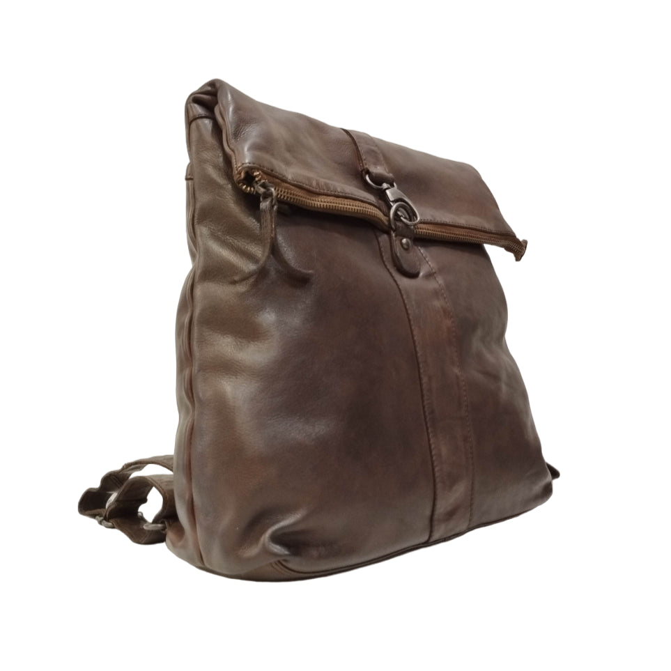 Lo Zaino firmato Gianni Conti, dal grintoso effetto vintage è caratterizzato da una tasca posteriore con zip e da una chiusura con pattina, zip e moschettone. Lo Zaino si ripiega nella parte superiore consentendo di mantenere la chiusura in posizione utilizzando l'anello di metallo.