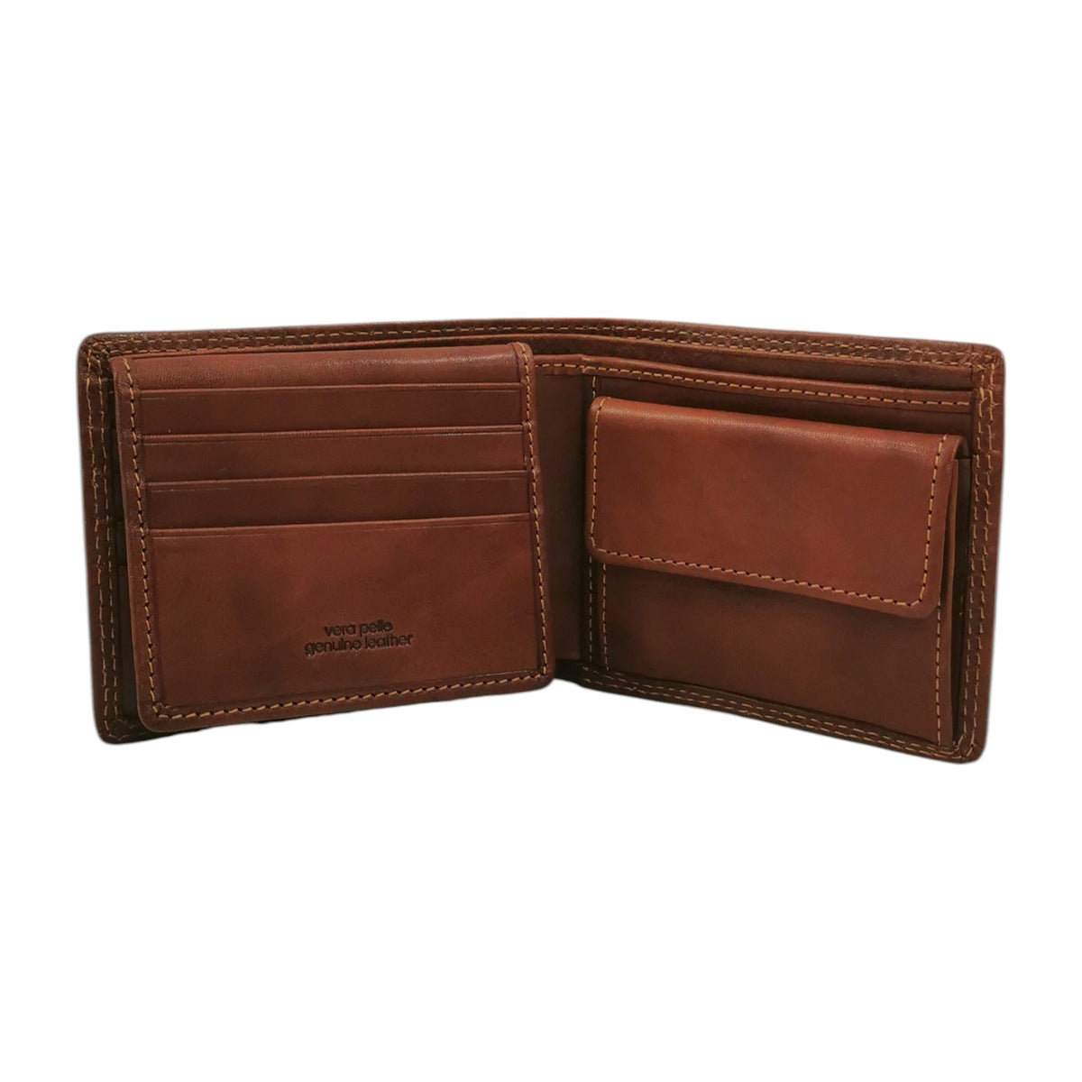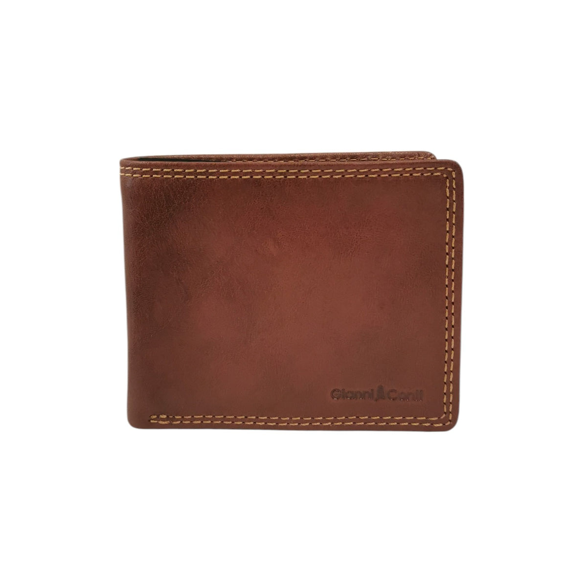 Gianni Conti Portafoglio Uomo in Pelle Cuoio con Cuciture a Contrasto