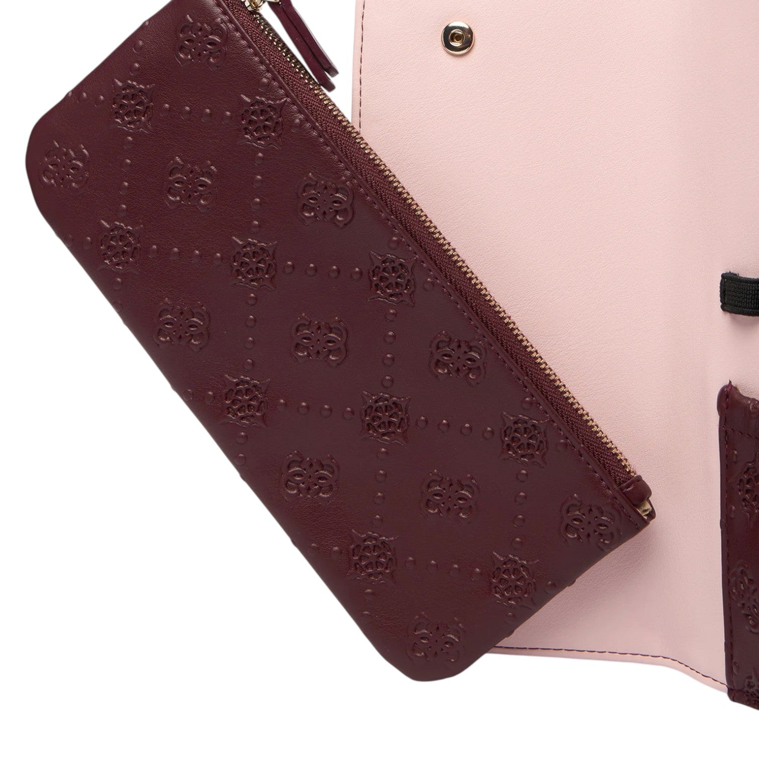 Guess Portafoglio Donna in Ecopelle Logata Bordeaux con Pochette