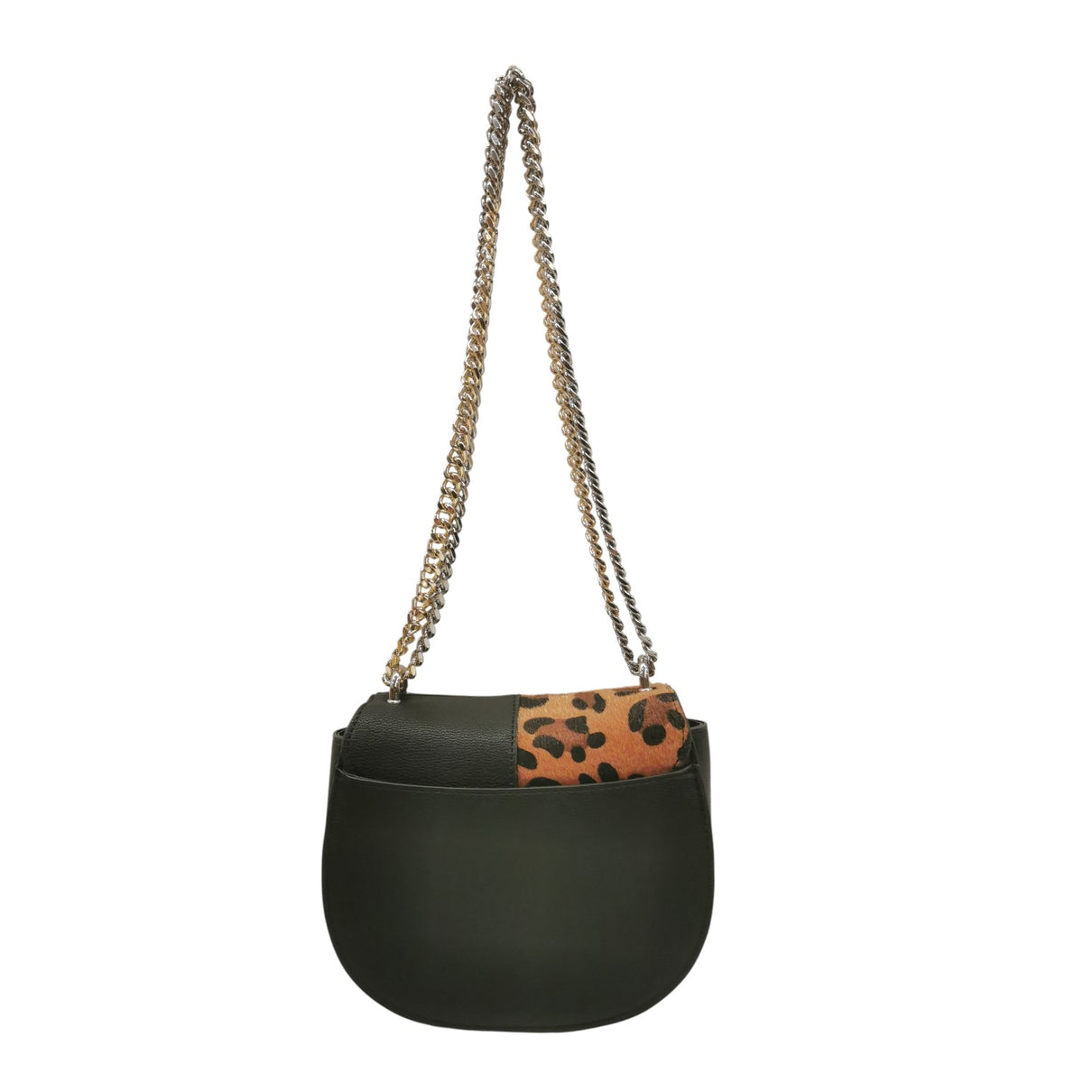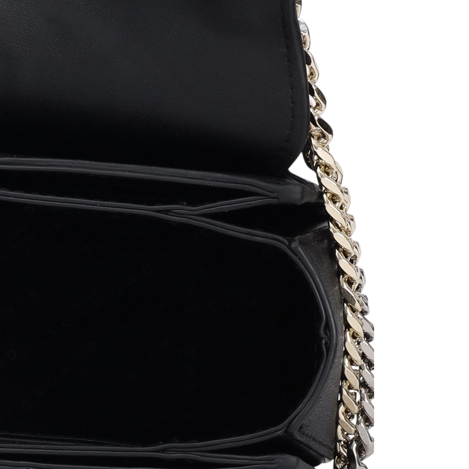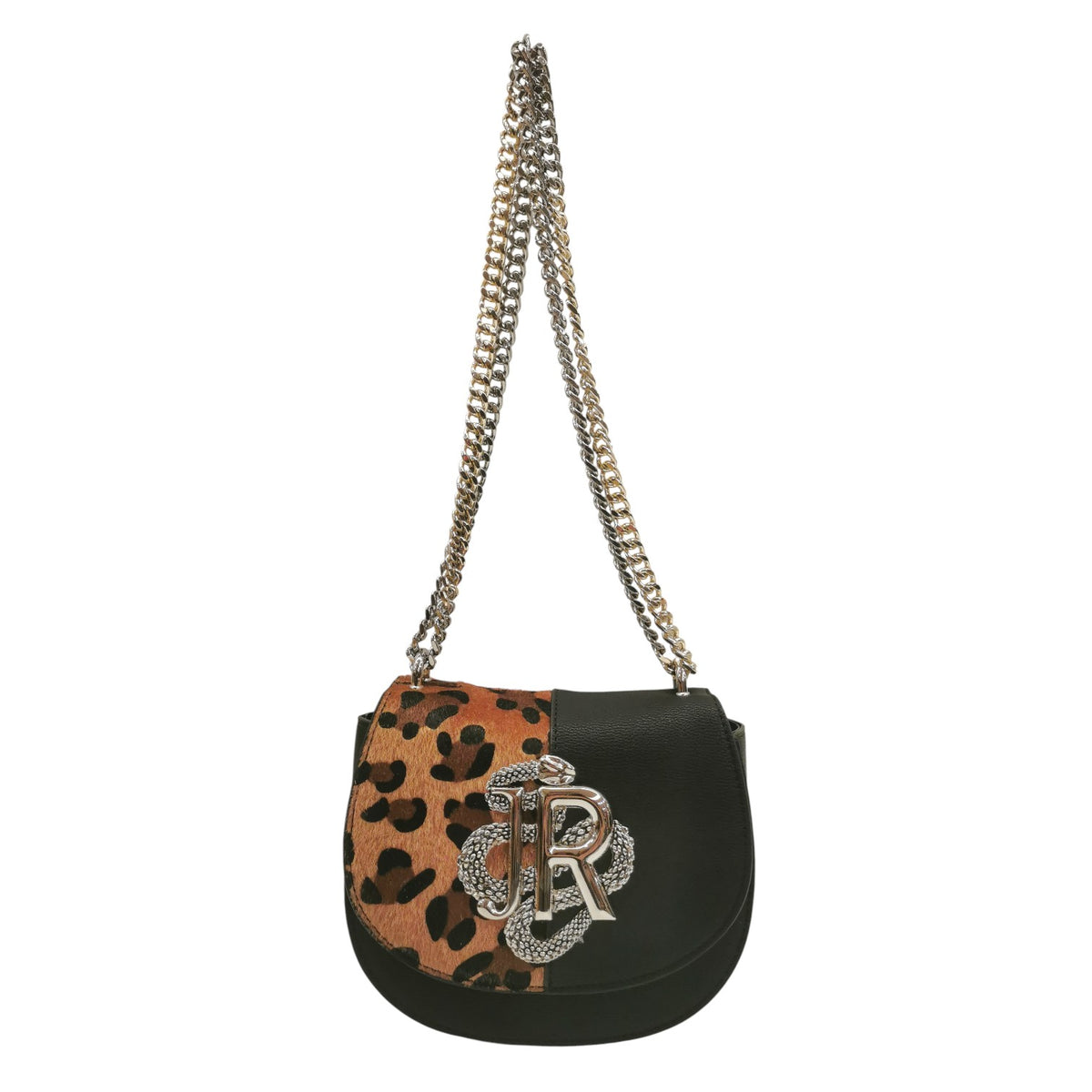 La Borsa a tracolla firmato John Richmond, realizzata in ecopelle con patta frontale impreziosita da un inserto animalier leopardato, si distingue per il grande dettaglio metallico dorato con logo JR intrecciato a un motivo snake, simbolo forte e iconico del brand. La chiusura è a bottone magnetico, pratica e sicura, mentre l'interno foderato è spazioso a sufficienza per contenere l'essenziale. La tracolla a catena in metallo dorato aggiunge un tocco glam, rendendola ideale sia per il giorno che per la sera.