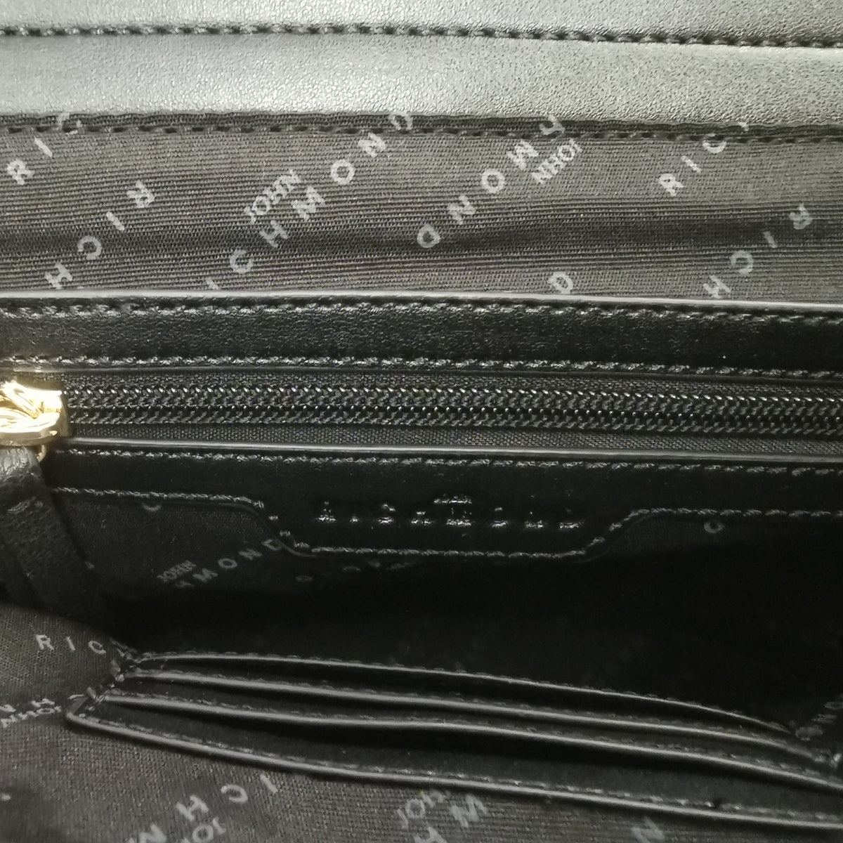 John Richmond Borsa a Tracolla Grande Donna in Ecopelle Nera Oro con Zip e Portatessere