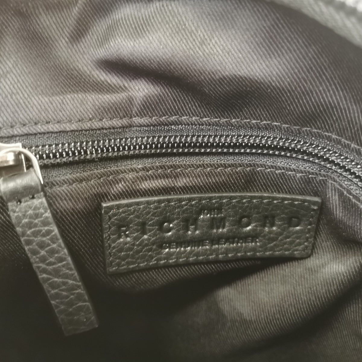John Richmond Borsello Uomo in Pelle Nero con Targhetta Logo Argento