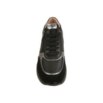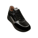 Keys Sneakers Donna in Pelle Laminata e Camoscio Nero con Zeppa