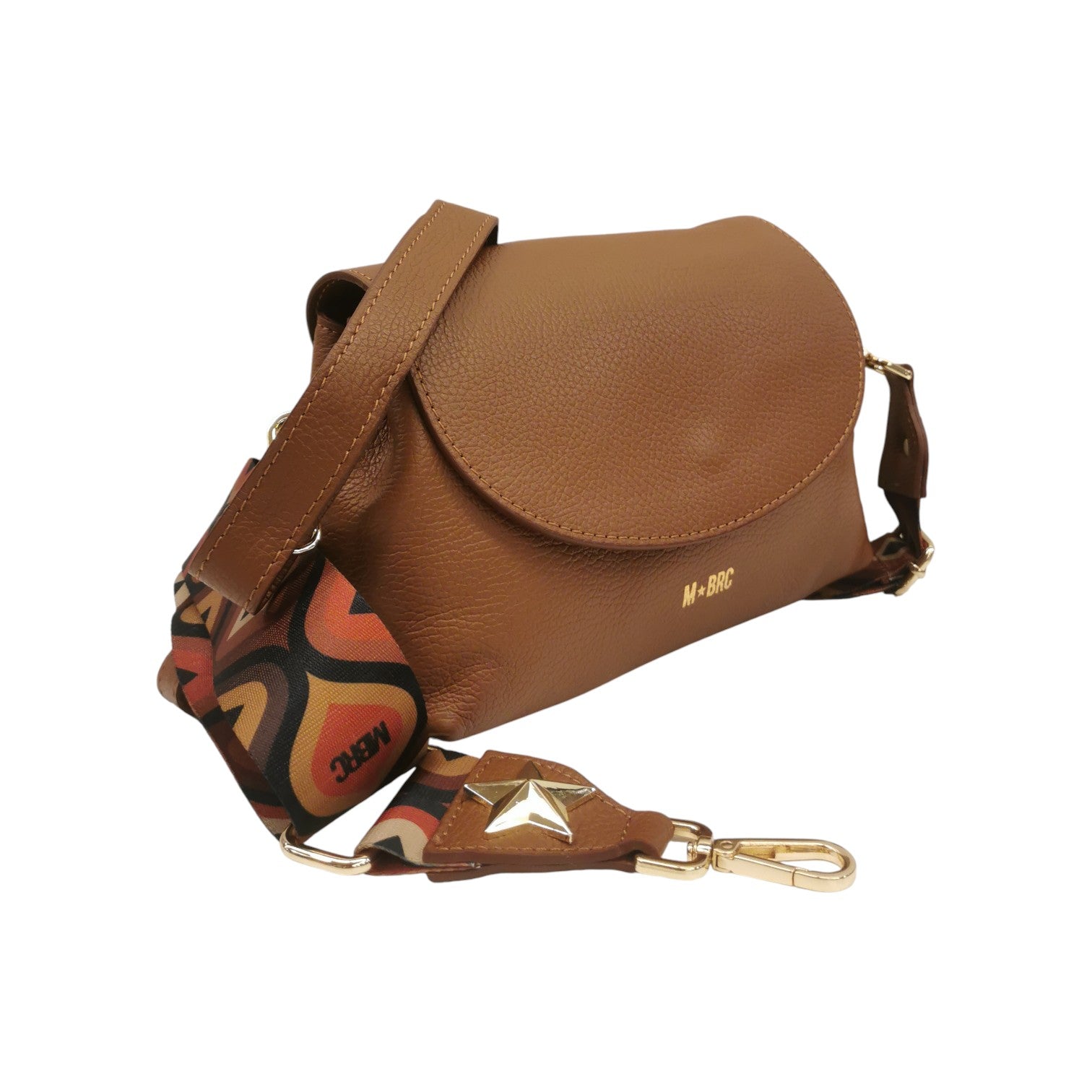 M Brc Borsa a Tracolla Donna Linea Obona in Pelle Cognac con Doppio Scomparto e Tracolla