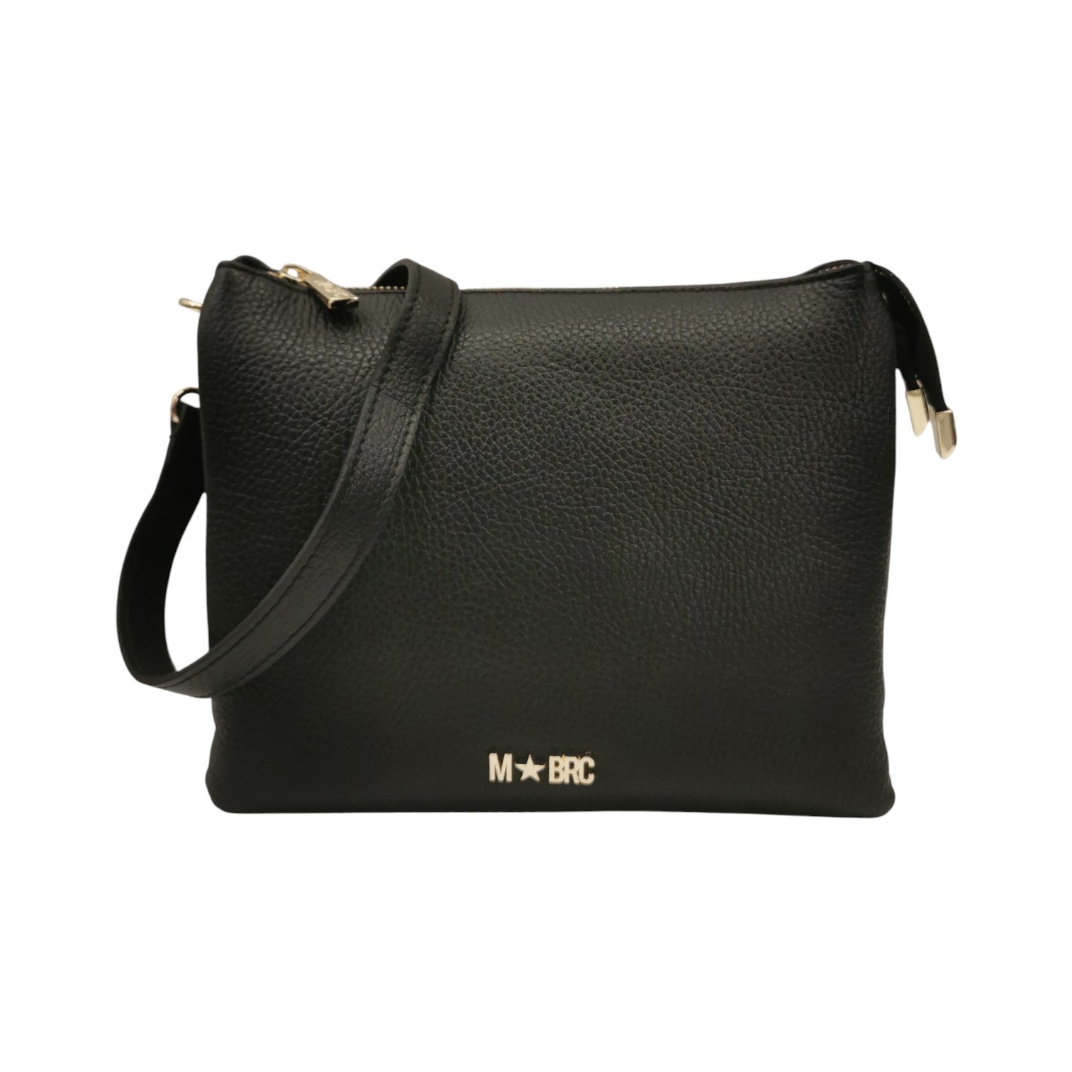 M Brc Borsa a Tracolla Donna Linea Piuma in Pelle Nera a 3 Soffietti