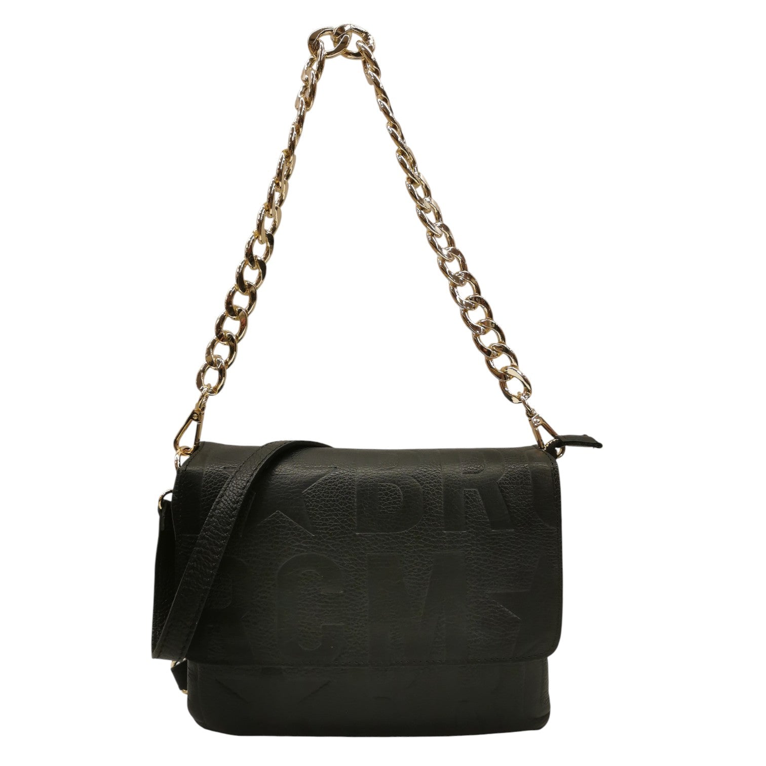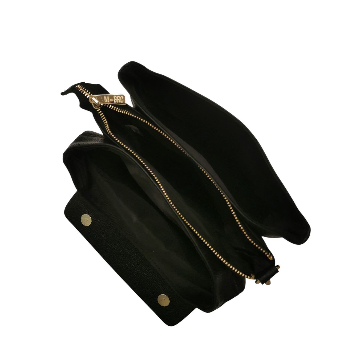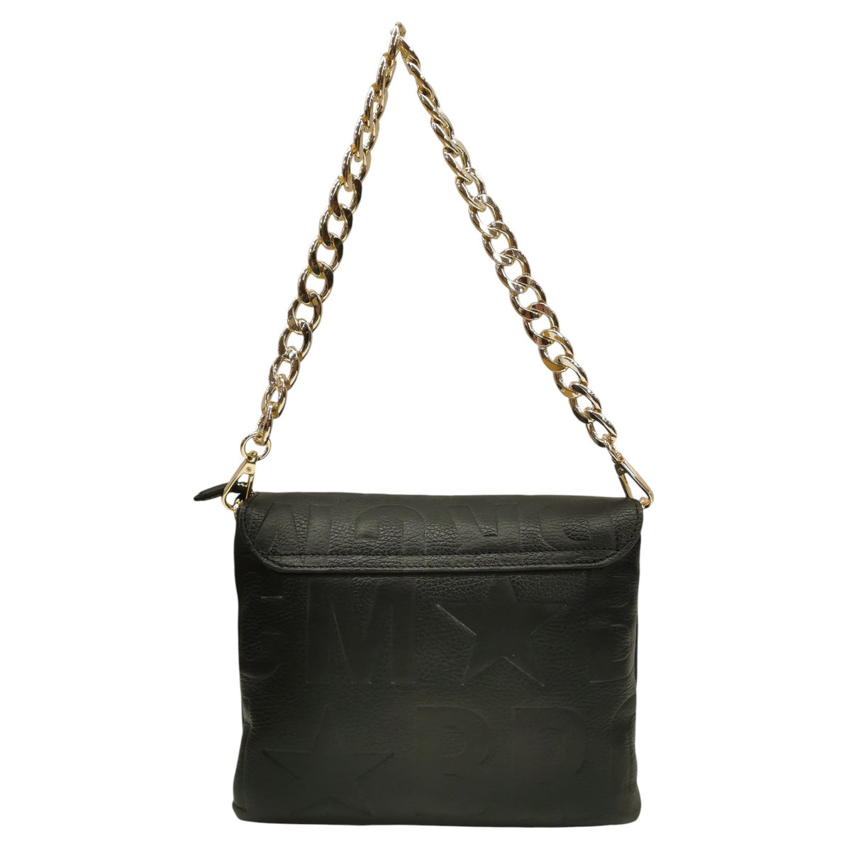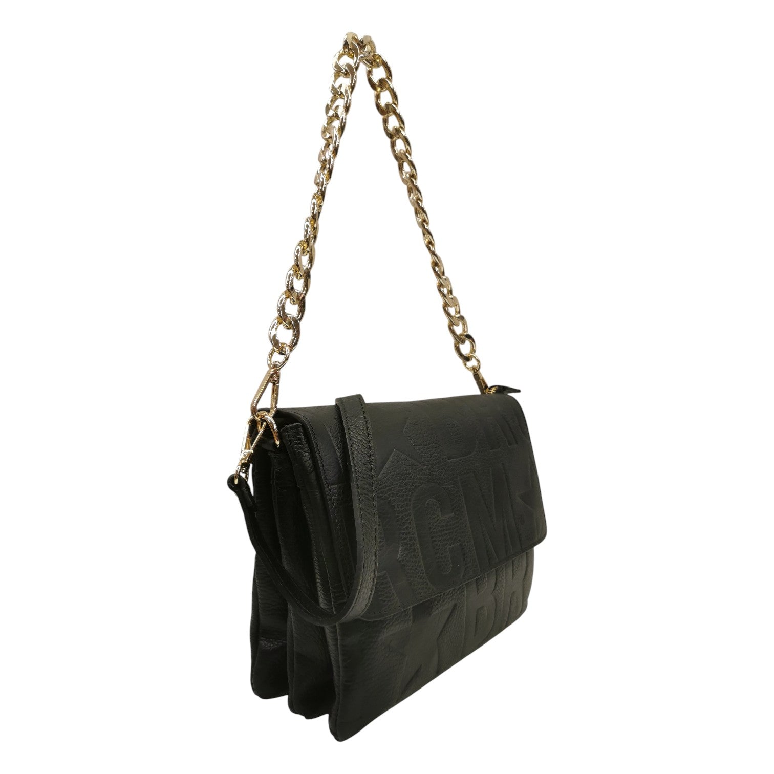 M Brc Borsa a Tracolla Donna Linea Sfera in Pelle Logata Nera con Catena e Patta