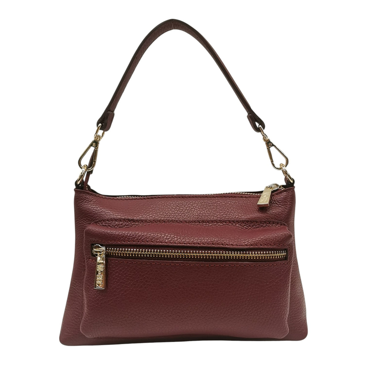 La Borsa a spalla firmata M Brc, della Linea Voyager realizzata in pelle bordeaux di alta qualità con chiusura superiore a zip. Da indossare a spalla oppure per un look più casual e dinamico basta agganciare la tracolla lunga regolabile. Presenta un manico removibile e due taschini con chiusura zip.