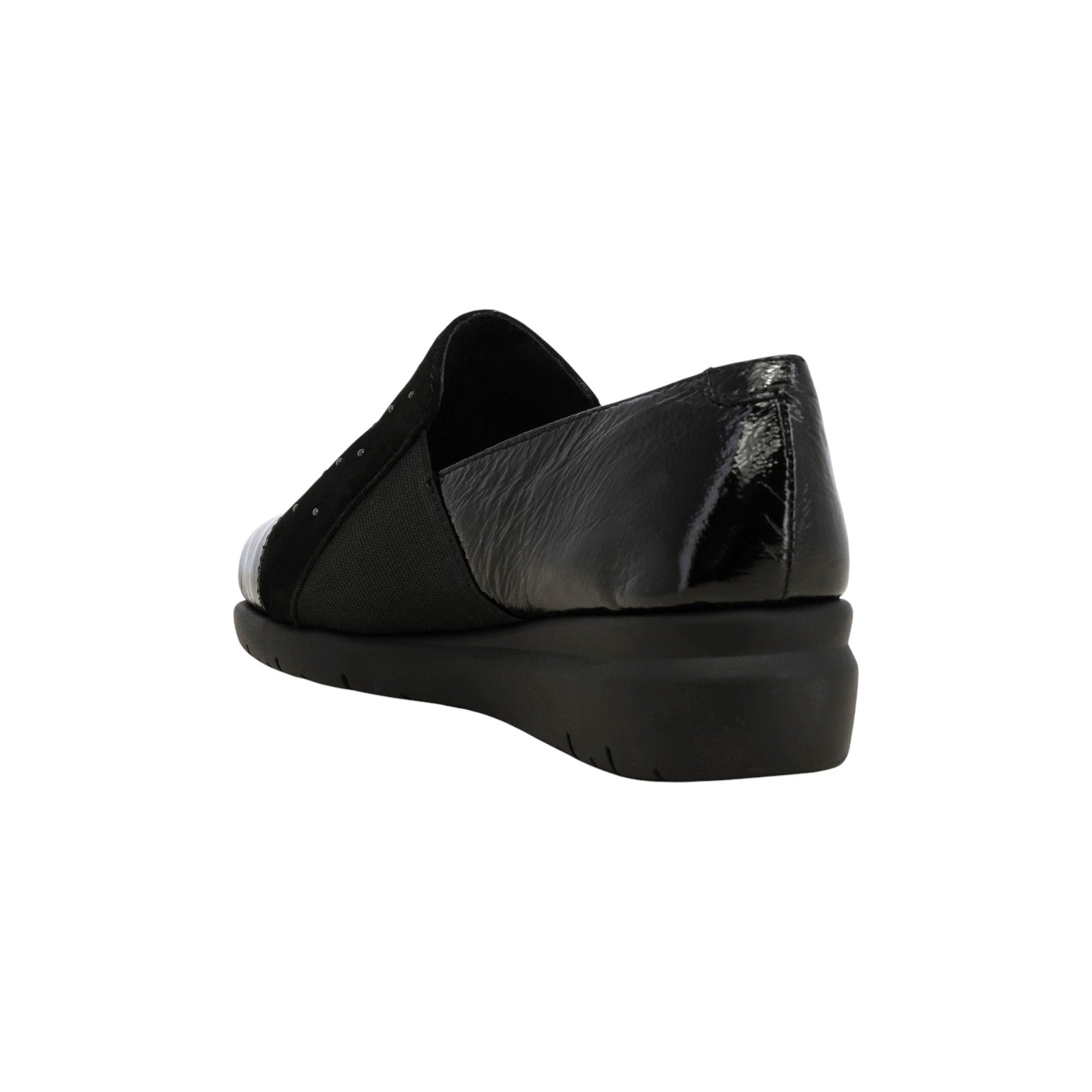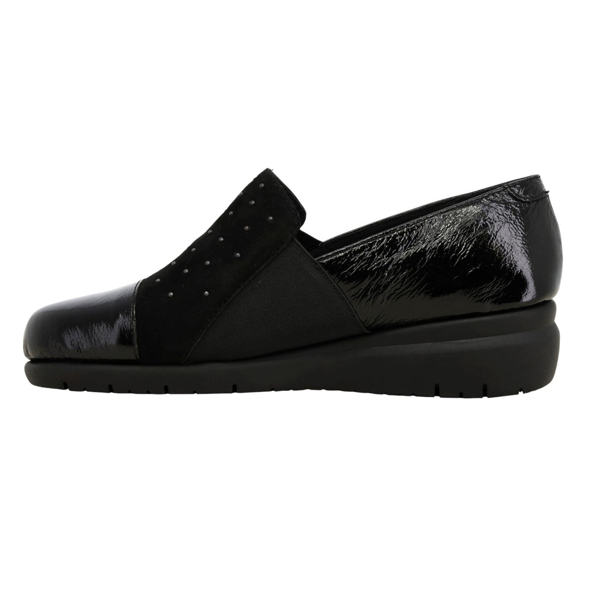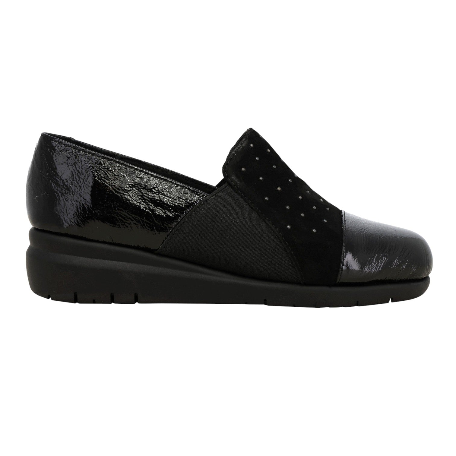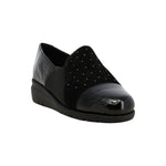 Melluso Mocassino Donna in Camoscio e Vernice Nero con Strass e Zeppa