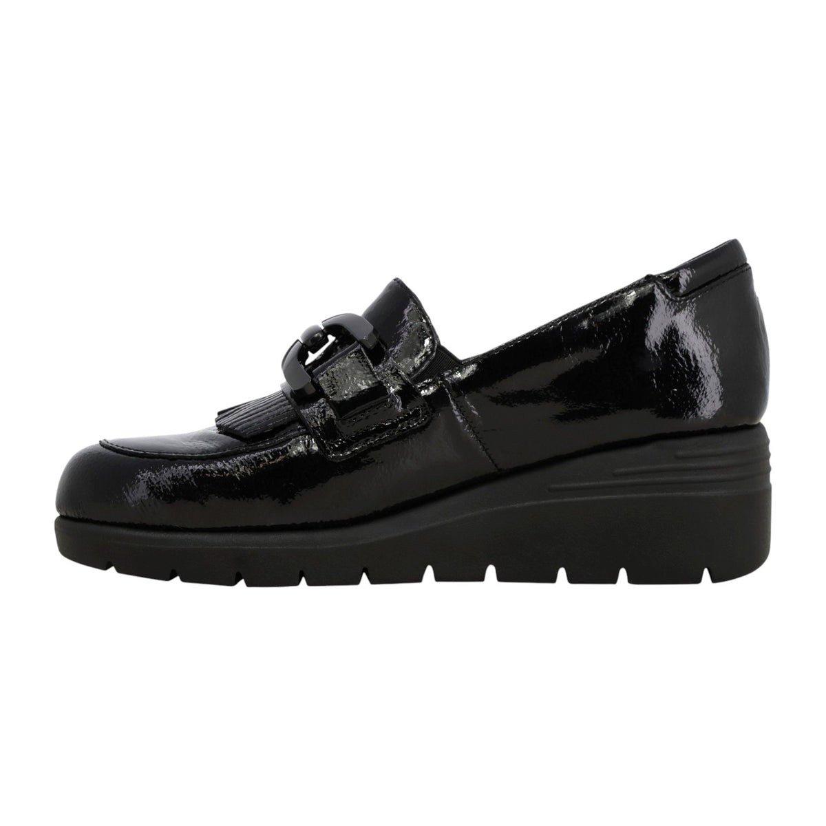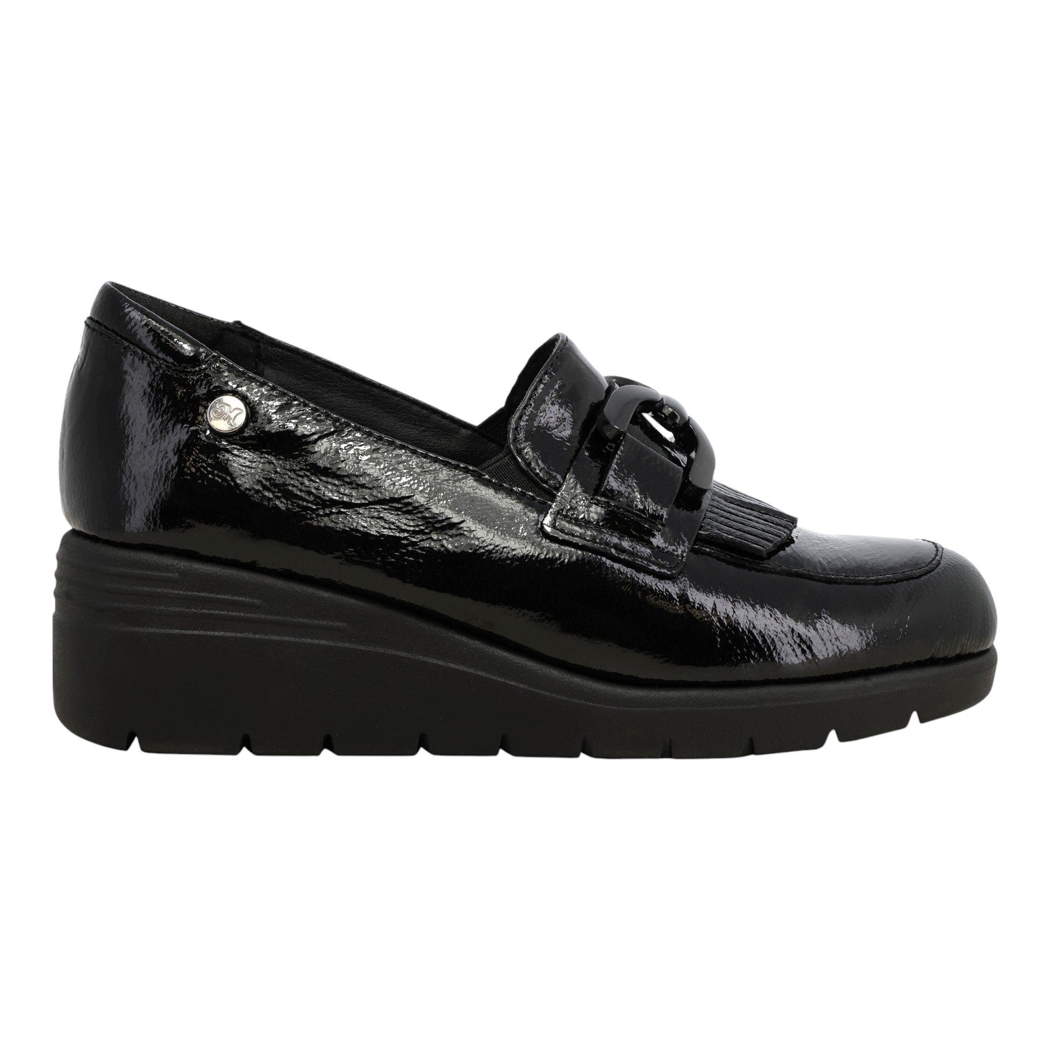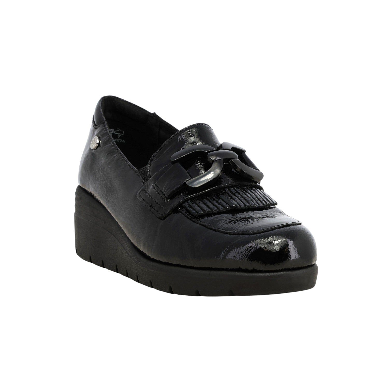 Melluso Mocassino Donna in Vernice Nera con Catena e Frange