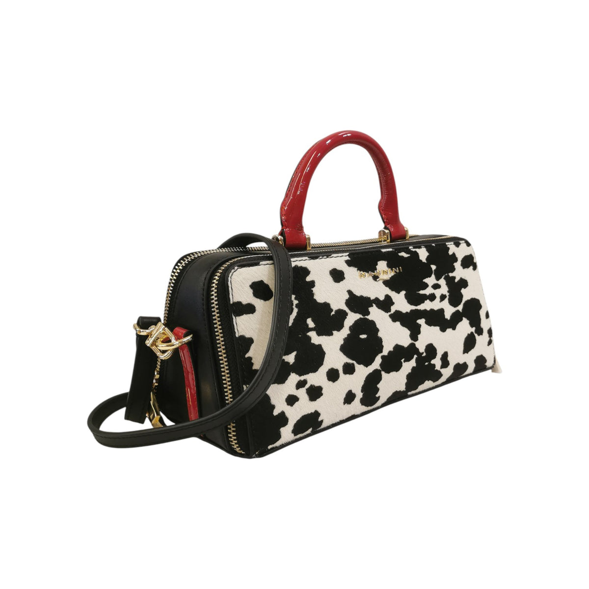 Nannini Firenze Borsa a Mano Rettangolare Glamour Donna in Pelle Cuoio Rosso e Animalier con Tracolla