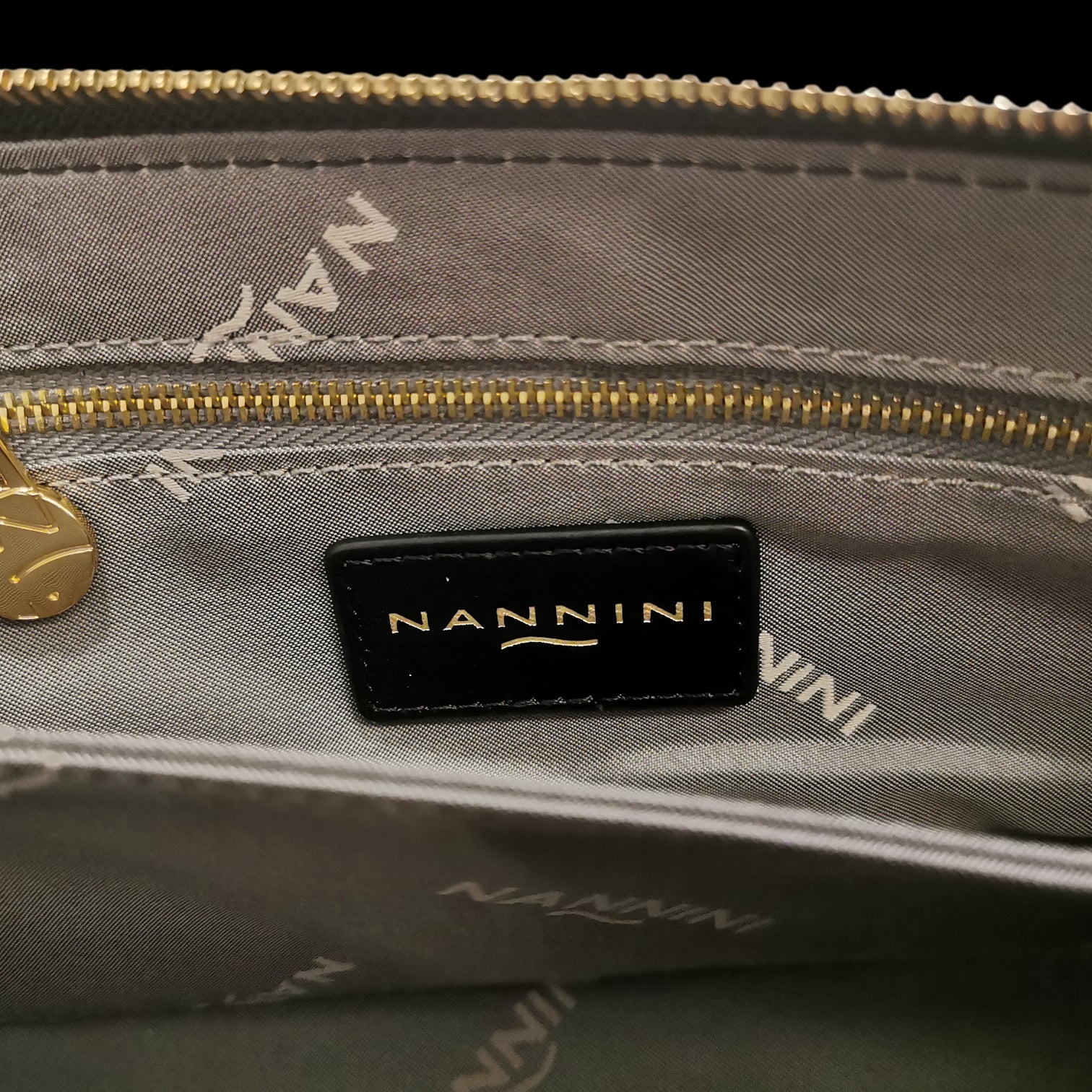 La Borsa a mano firmata Nannini Firenze, della Linea Glamour realizzata in vera pelle con stampa animalier è caratterizzata da logo frontale in metalleria color oro e da tracolla regolabile e removibile, inoltre dispone di doppio scompartimento foderato internamente in tessuto logato e presenta una tasca chiusa a zip.