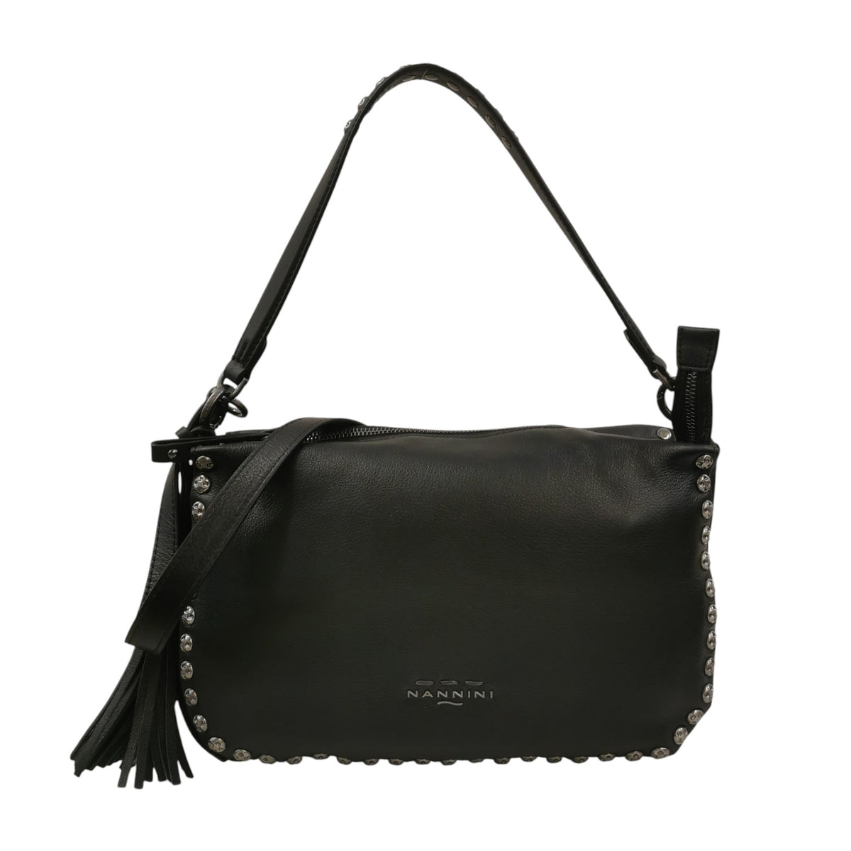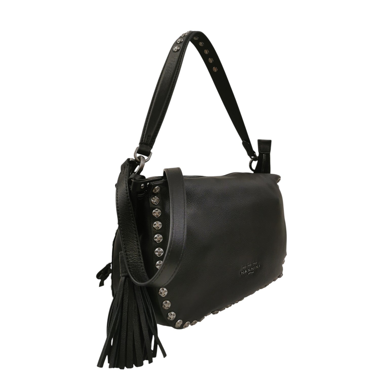 Nannini Firenze Borsa a Spalla Irma Donna in Pelle Nera con Borchie e Tracolla