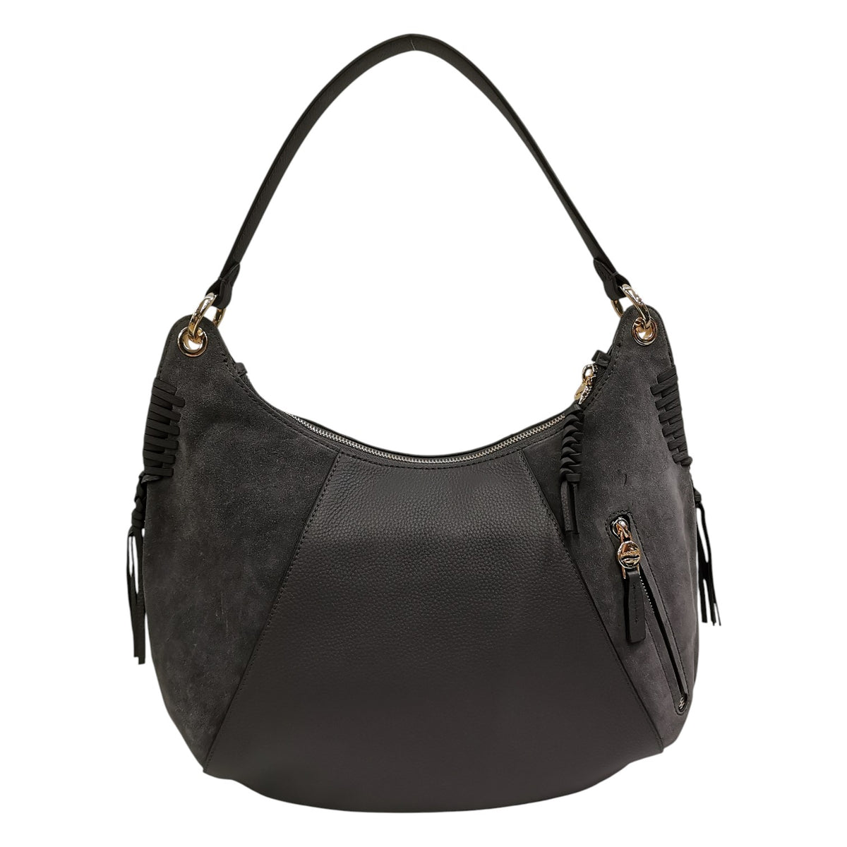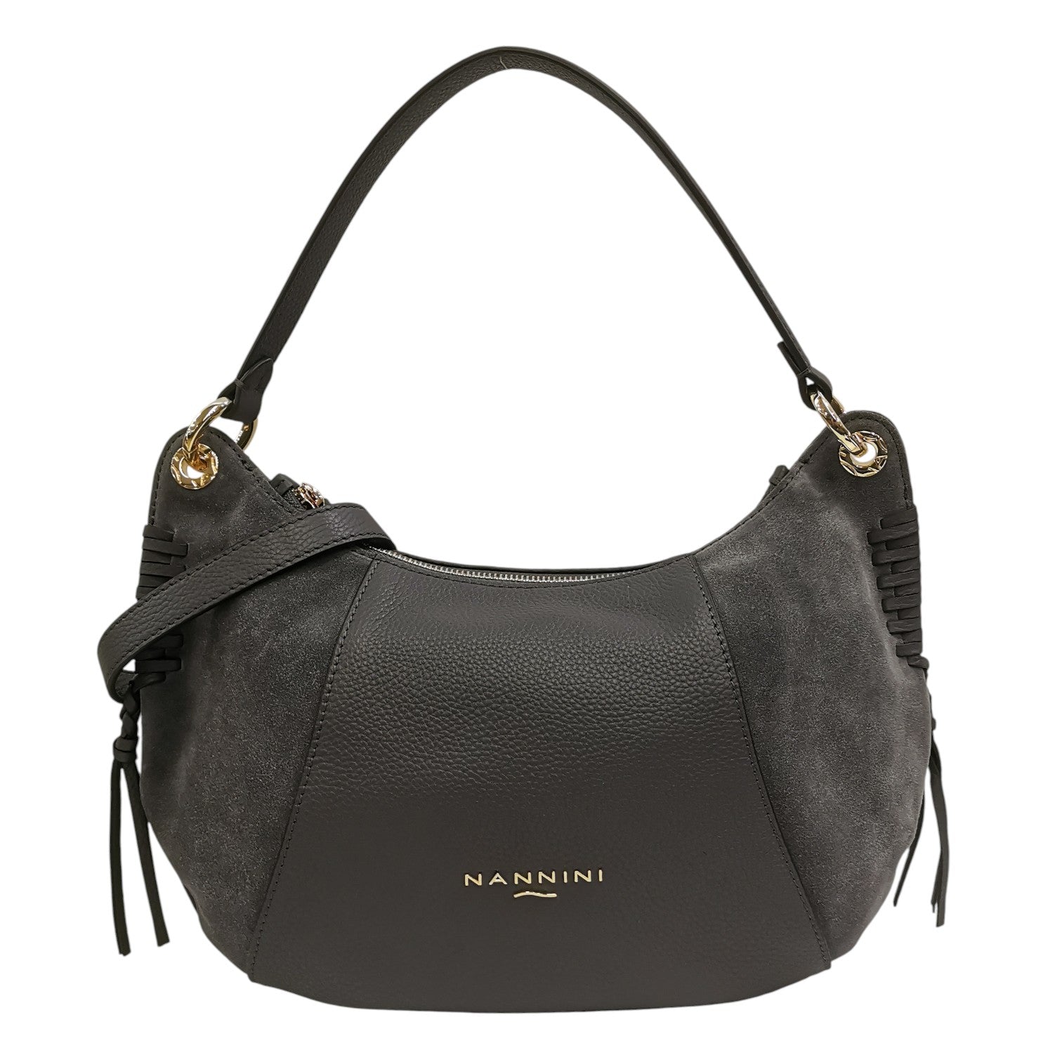 Nannini Firenze Borsa a Spalla Media Linea Eva Donna in Pelle e Camoscio Grigio con Tracolla
