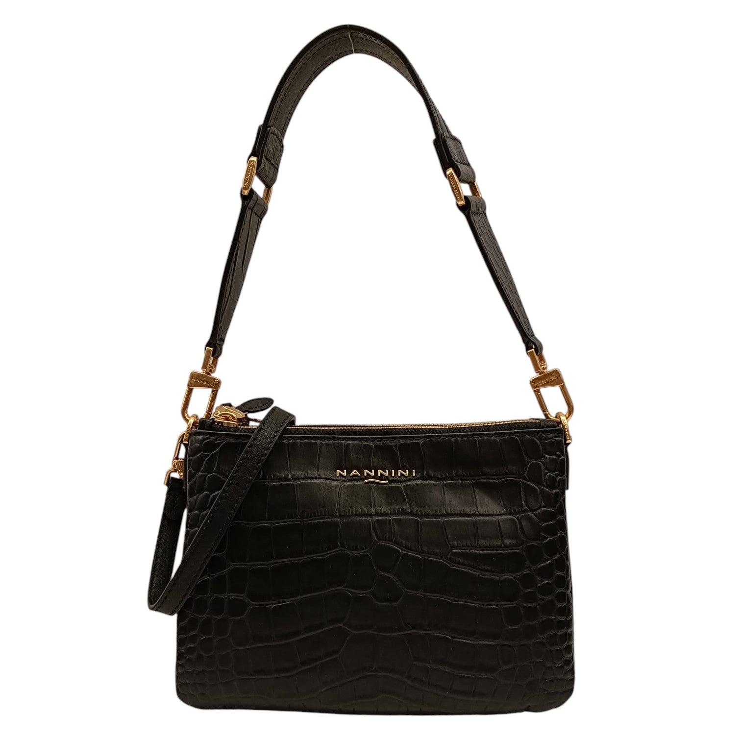 Nannini Firenze Borsa a Spalla Piccola Nunzia Donna in Pelle Nera Cocco