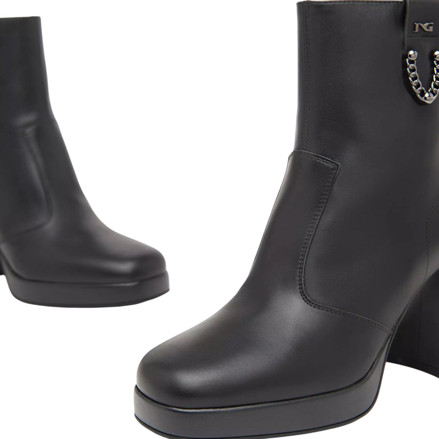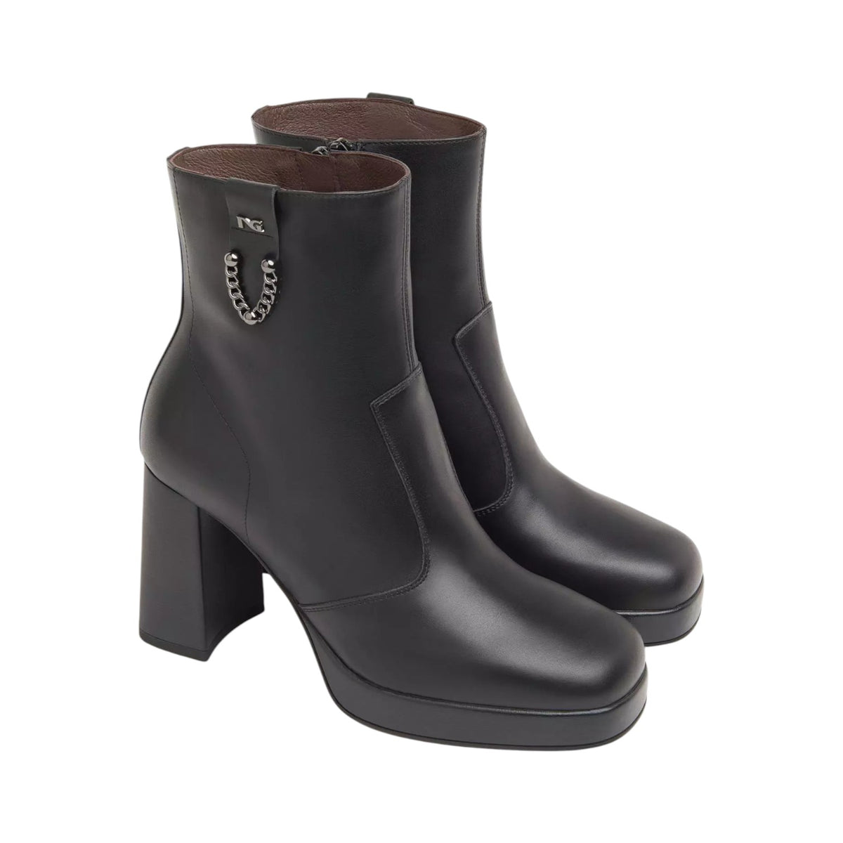 Lo Stivaletto firmato Nero Giardini, realizzato in pelle qui proposto nella variante nera è caratterizzato da decoro con logo unilaterale con catenina e da chiusura con zip laterale per facilitarne la calzata. L'interno è foderato in pelle, mentre il comodo tacco largo alto 9cm rivestito in pelle offre comfort.