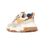 La Sneakers firmata Refresh, è un'esplosione di stile contemporaneo e funzionalità. Il mix di materiali in tessuto tecnico ed ecopelle, unito a contrasti cromatici tra beige, cuoio, blu e bianco, crea un design vivace e ricercato, perfetto per chi ama distinguersi. La vera protagonista è la suola chunky maculata effetto “spray”, che dona carattere e leggerezza, oltre a garantire un'ottima ammortizzazione. L'interno imbottito e la chiusura con lacci assicurano una calzata comoda e stabile.