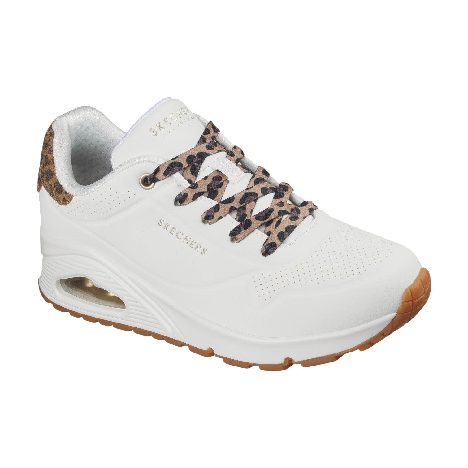 Skechers Sneakers Donna in Ecopelle Bianco Leopardato Uno - Jungle Nite