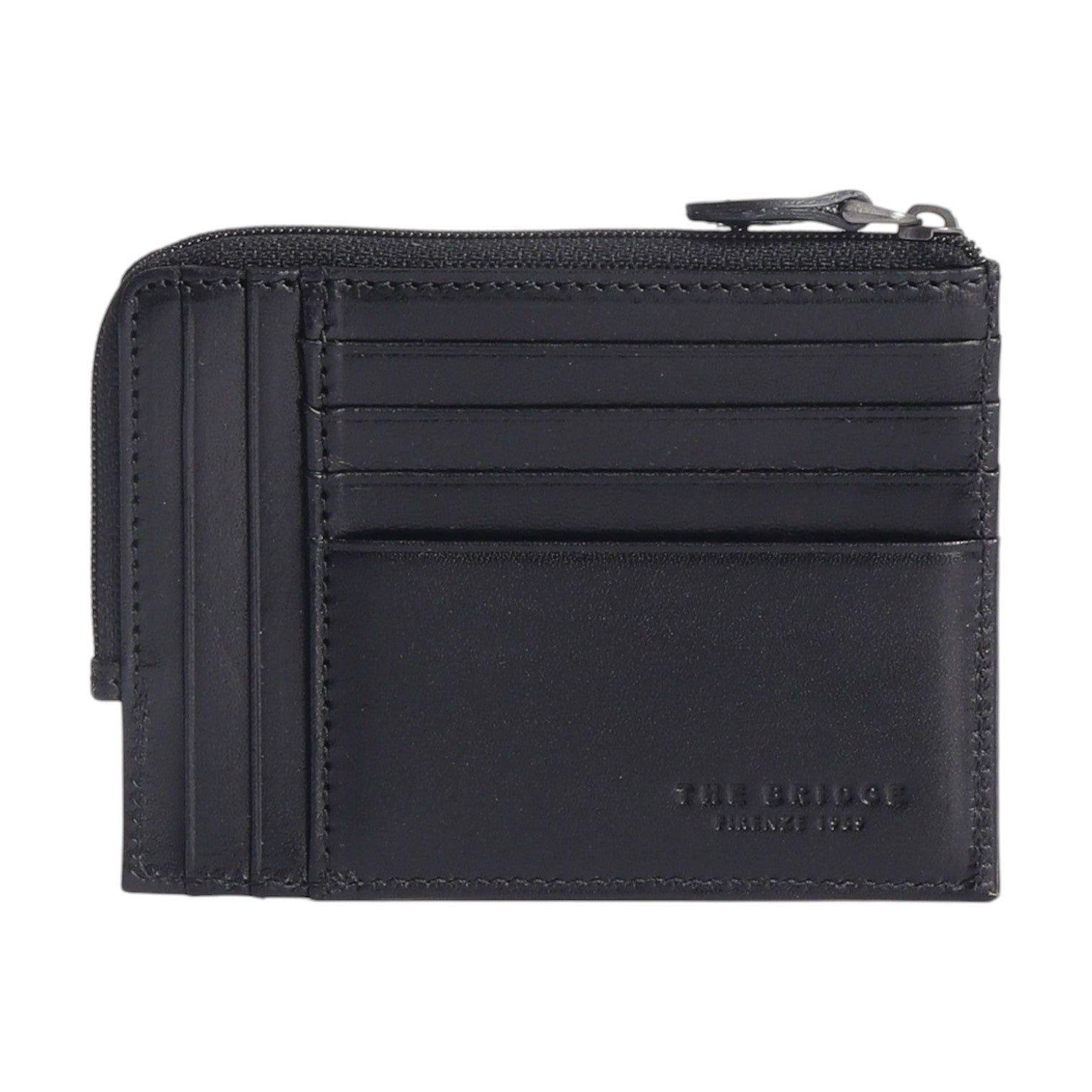 Il Portacarte firmato The Bridge, dal design piatto della Linea Story realizzato in vera pelle è caratterizzato da chiusura con zip e da slot porta carte con portamonete interno.