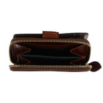 Il Portafoglio firmato The Bridge, della Linea Frida realizzato in vera pelle è caratterizzato da 1 scomparto con zip all around, diviso in 2 scomparti e da 8 scomparti portatessere con due scomparti per banconote.
