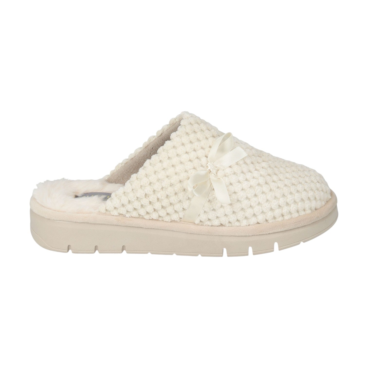 Valleverde Pantofola Donna in Tessuto Panna con Fiocchetto