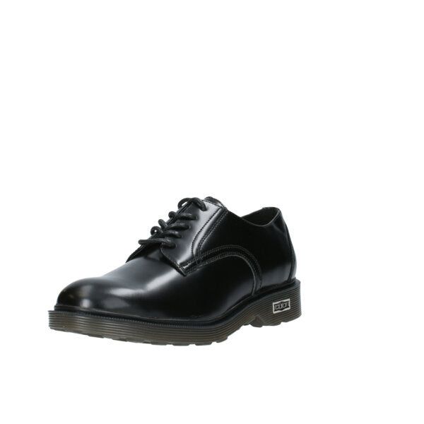 Stringata realizzata in pelle spazzolata color nero. Fodera in tessuto e pelle. Soletta interna (non removibile) in pelle. Chiusura con lacci in tessuto color nero. Suola in gomma antiscivolo con stampa carrarmato alta 3 cm. Logo Cult in metallo inserito sul lato esterno della suola.