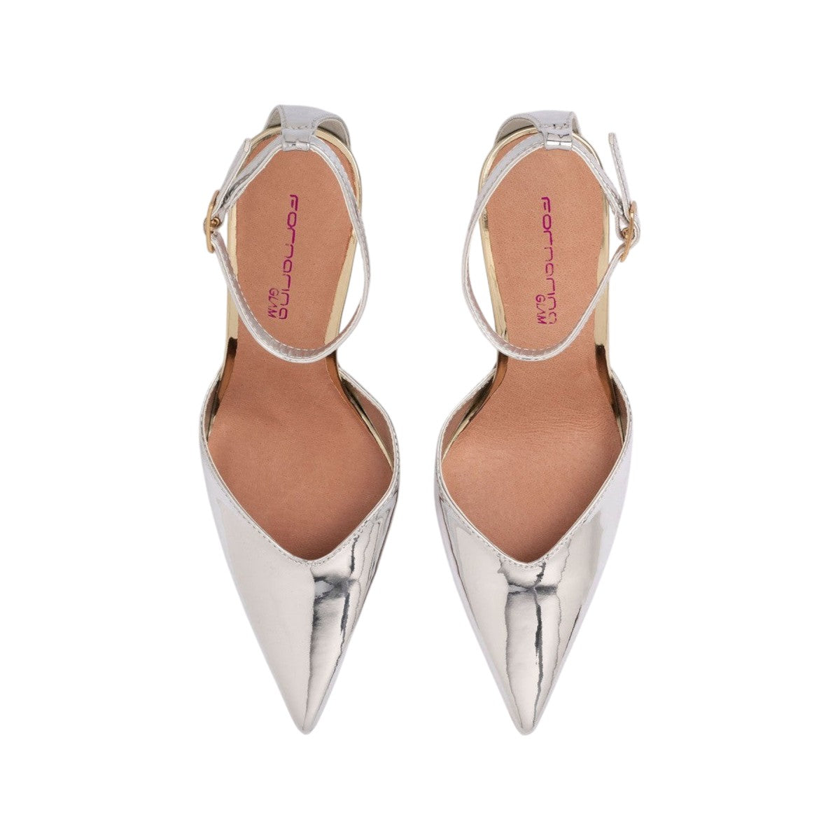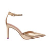 Il Décolletté firmato Fornarina della linea Dream, design affilato, scollatura a punta, vernice dorata, cinturino regolabile alla caviglia, effetto nude laterale e sottotacco fucsia. Sexy e shiny!