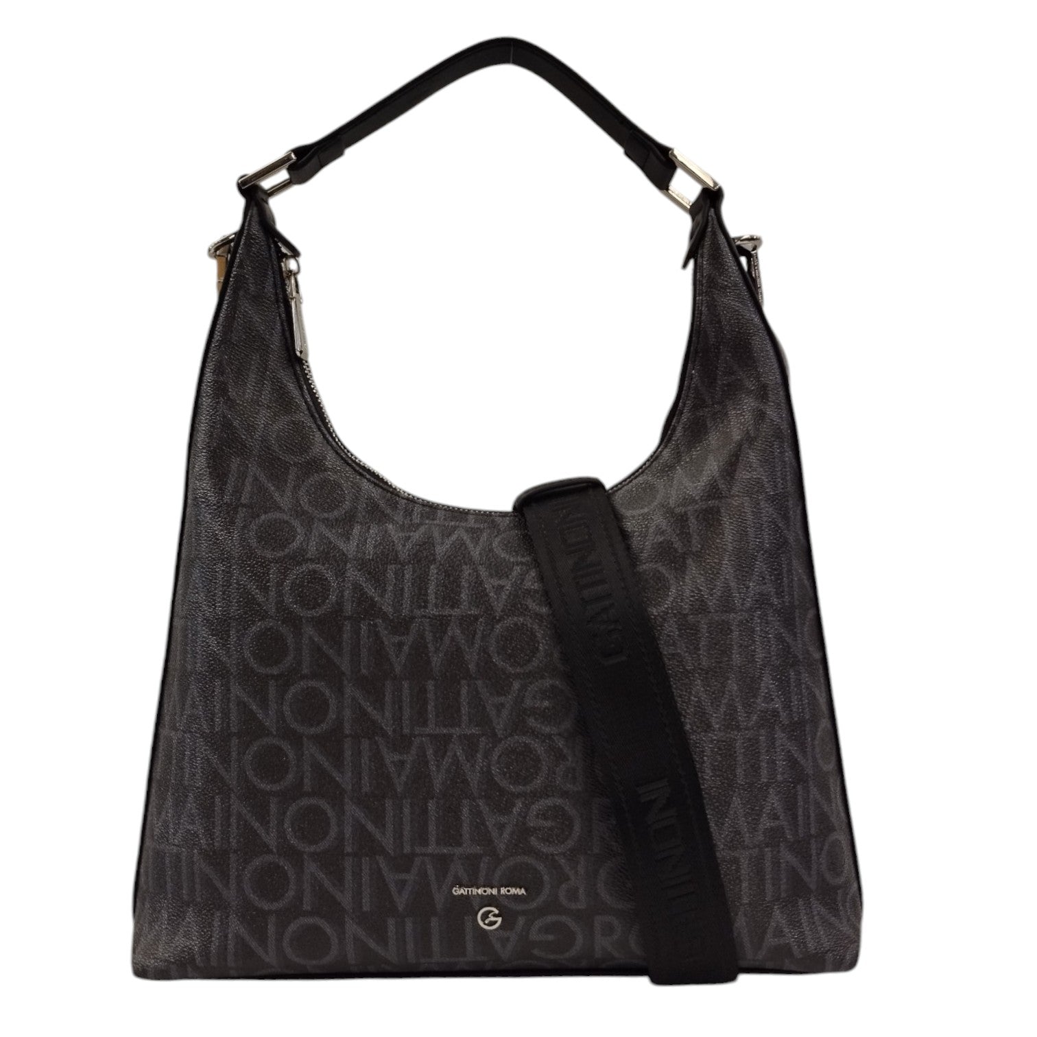 Gattinoni Roma Borsa Hobo Donna Logata Nera con Tracolla Tessuto Logo
