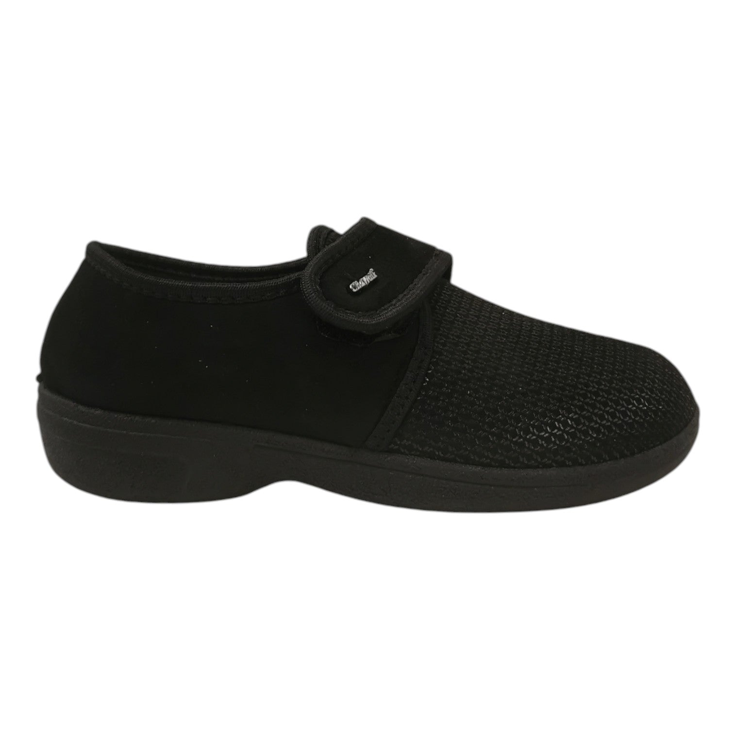 La Pantofola firmata Cliawalk, realizzato in tessuto nero dotata di chiusura a strappo, morbido sottopiede in sintetico tipo velluto e fondo in gomma alto circa 3.5 cm. La linea Cliawalk rappresenta l’eccellenza per comodità, eleganza e competitività, garantendo il benessere del piede.