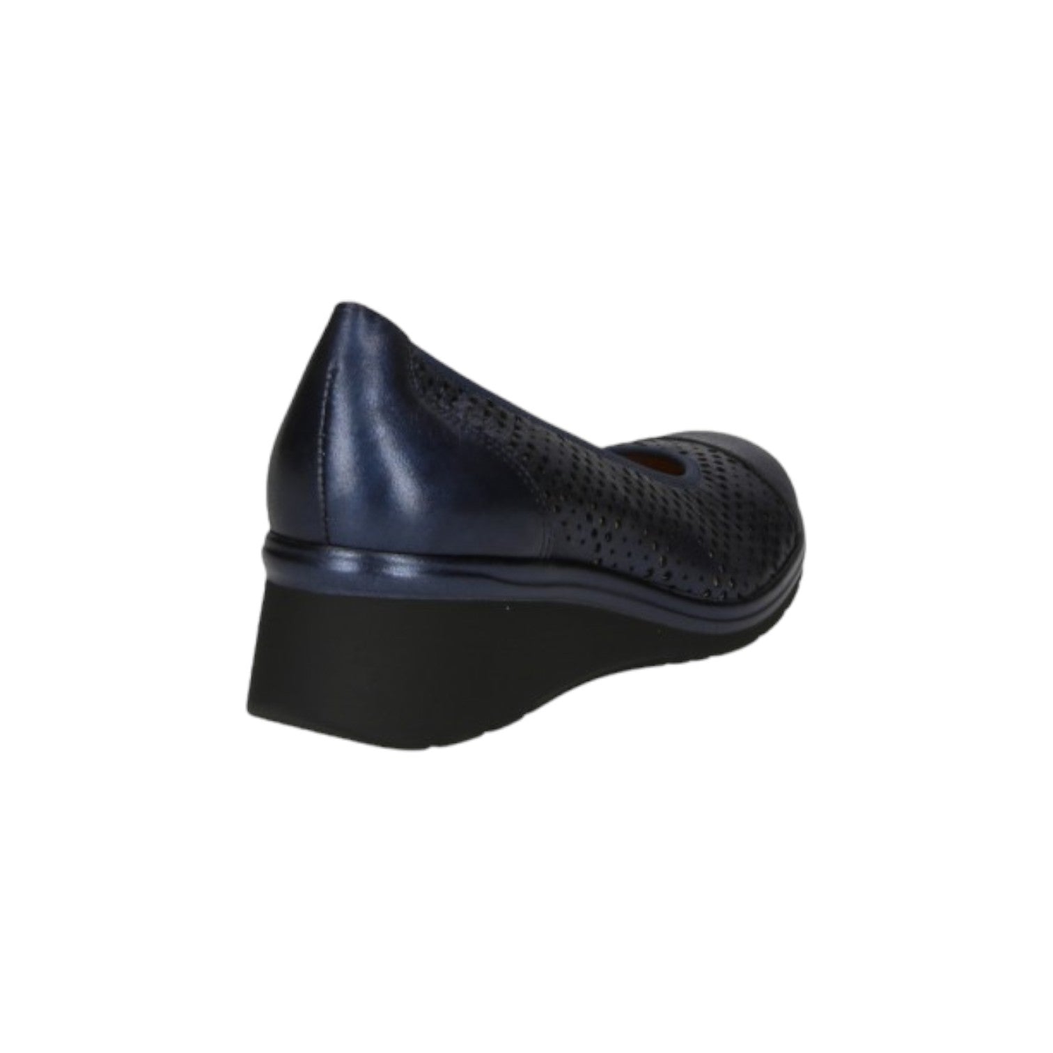 Pitillos Décolleté Donna in Pelle Blu Traforata con Punta Tonda e Zeppa
