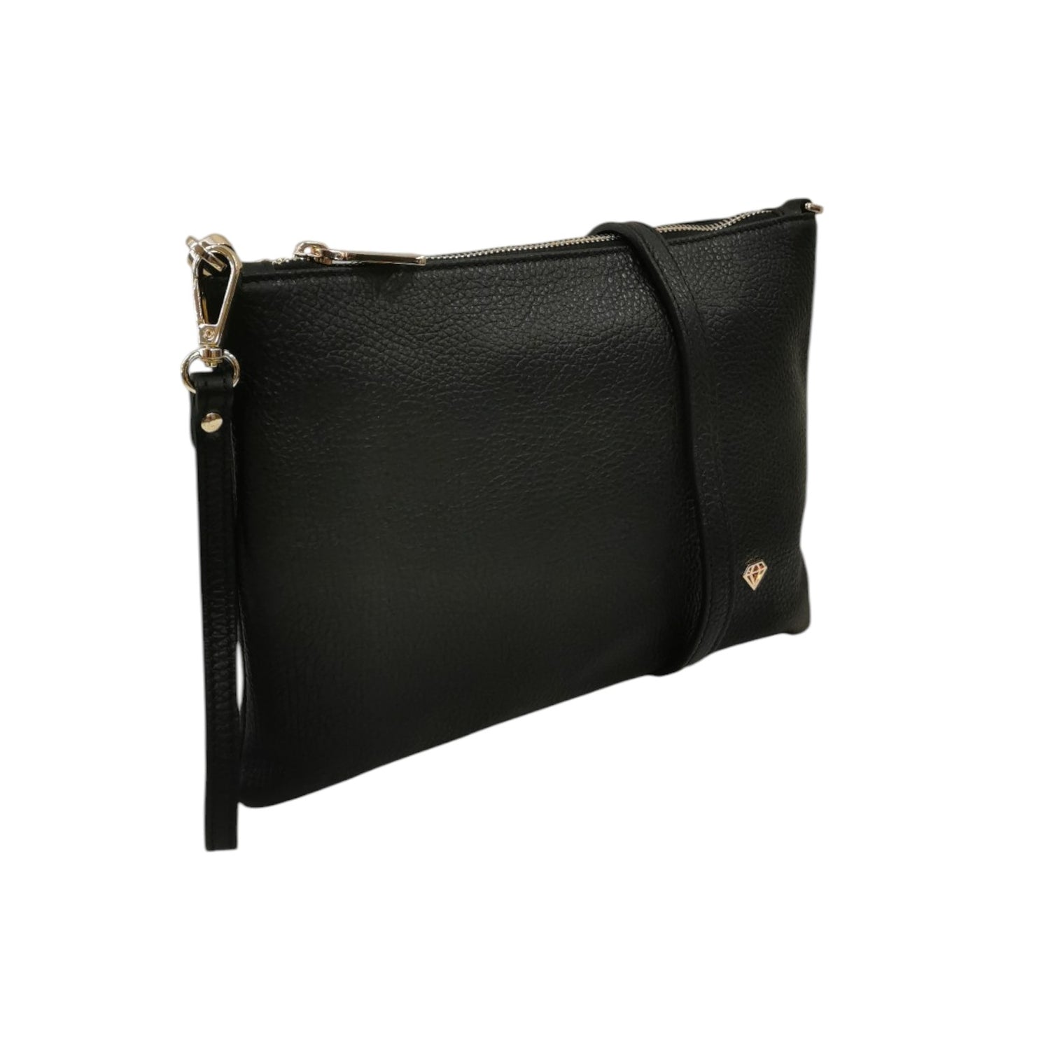 By Byblos Pochette Donna in Ecopelle Martellata Nera con Polsino e Tracolla