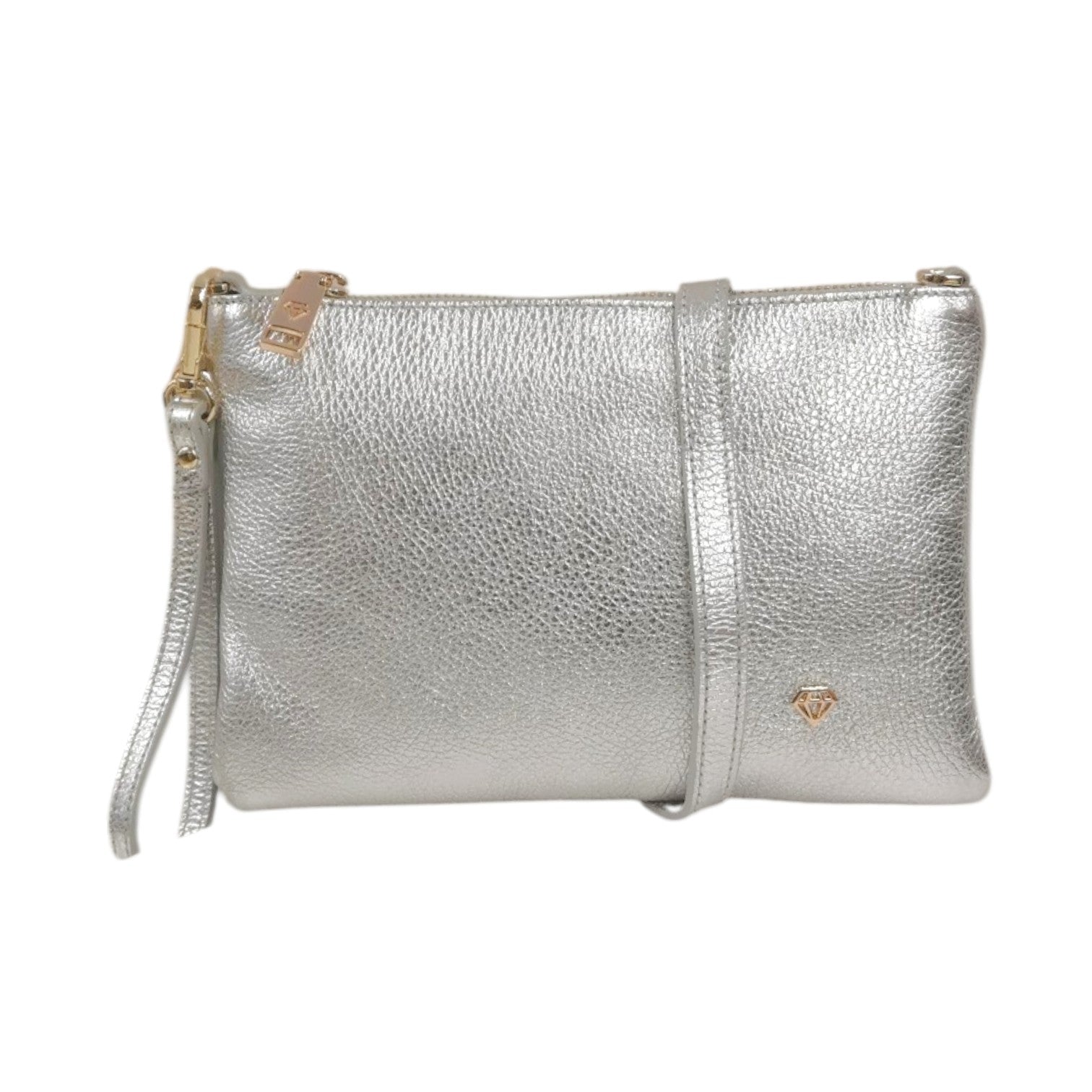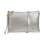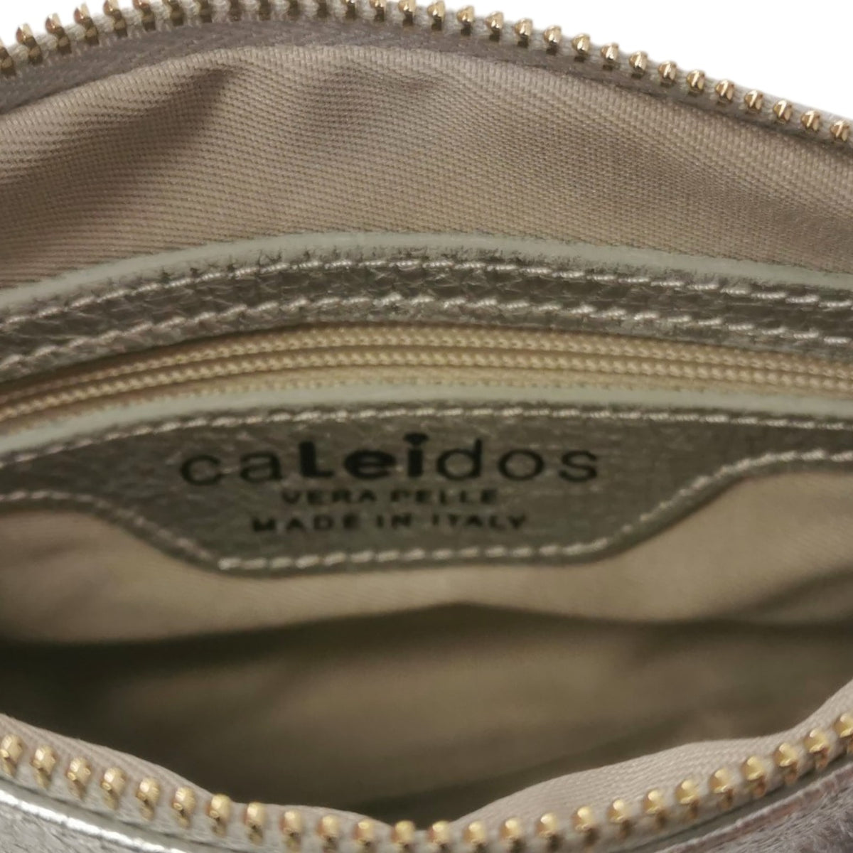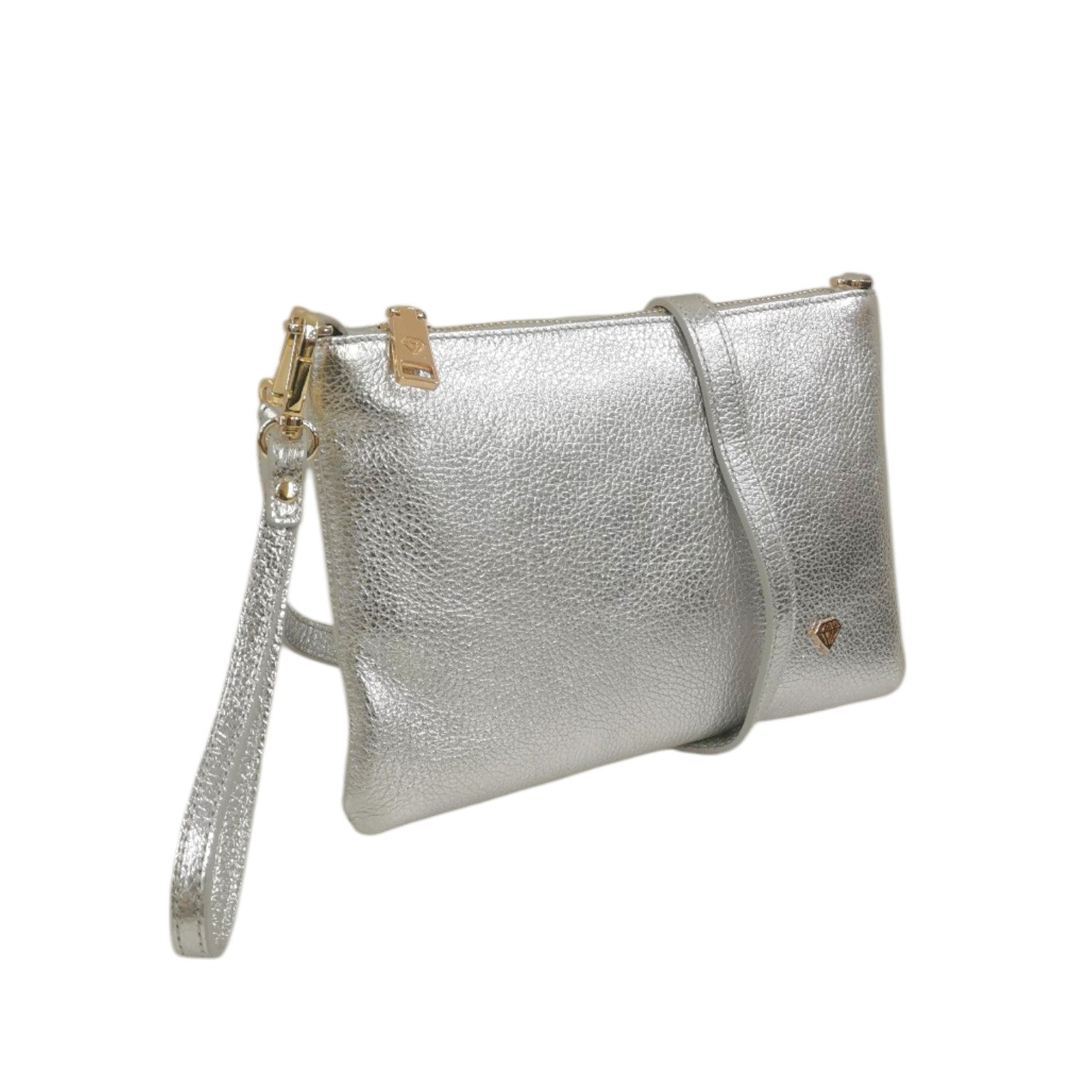 Caleidos Pochette Donna in Pelle Argento con Tracolla e Polsino e Logo Laterale